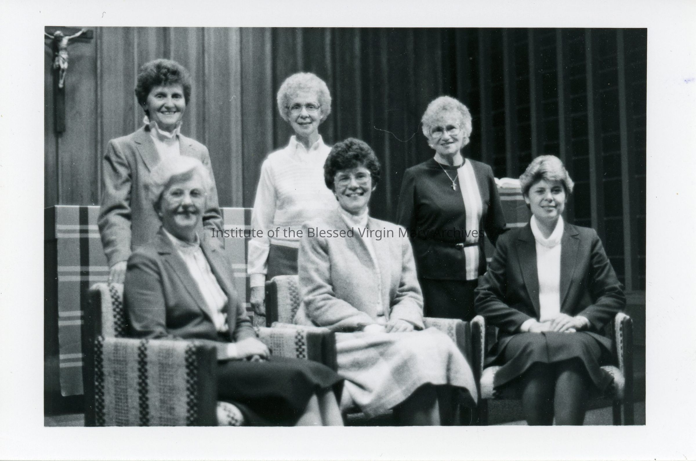 IBVM Sisters from the community at Our lady of the Assumption in Carmichael, California. Standing, from left to right, are Sister Patricia (Trinita) Pendleton, Sister Catherine (Celine) Oliva and Sister Edith (Blanche) Turgeon. Seated, from left to right, are Sister Mary Ellen (Roland) Beck, Sister Arlene (Alma) Connelly and Sister Elaine Iwanski.