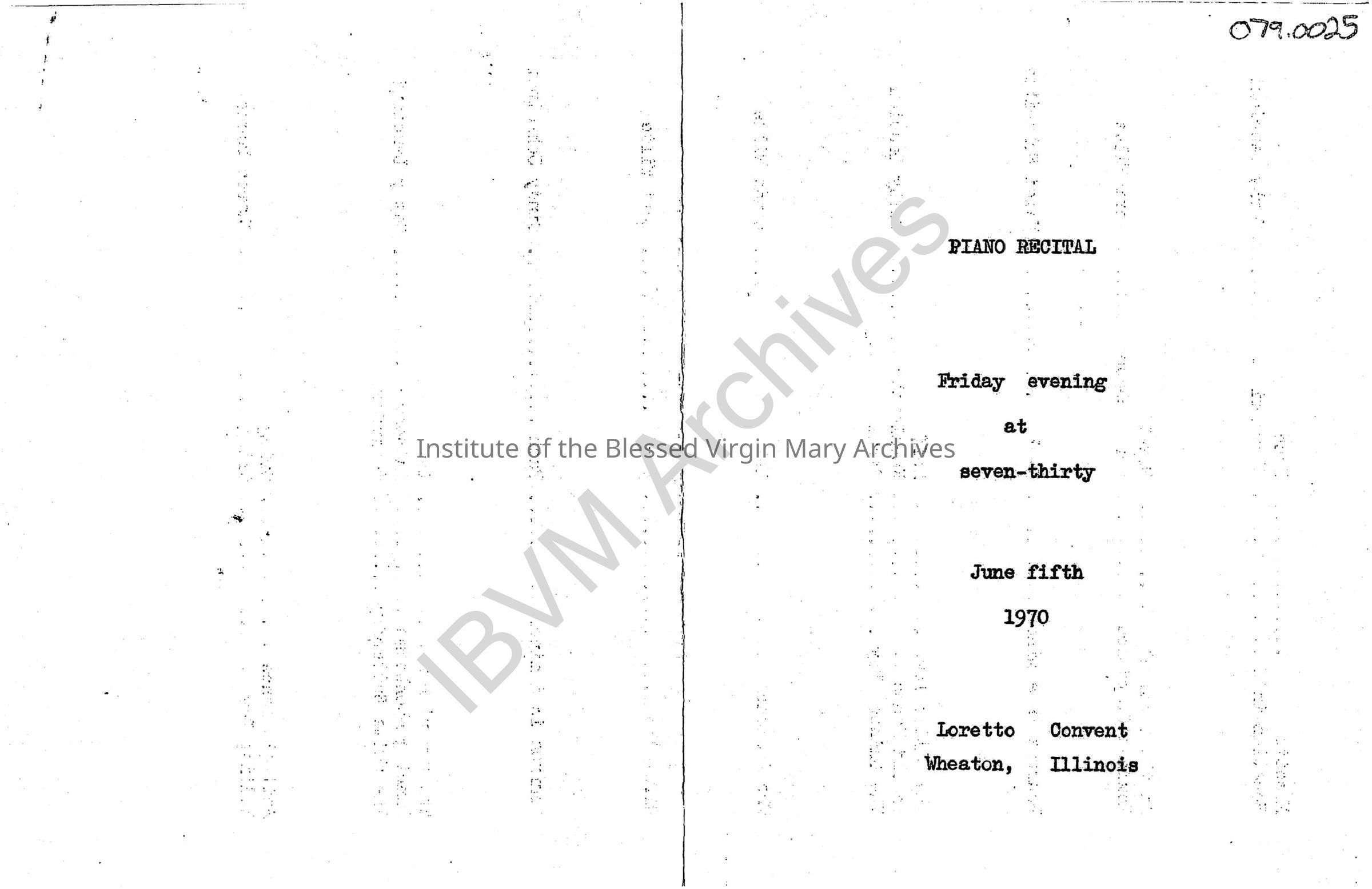 Program for a piano recital held at Loretto Convent in Wheaton, Illinois.