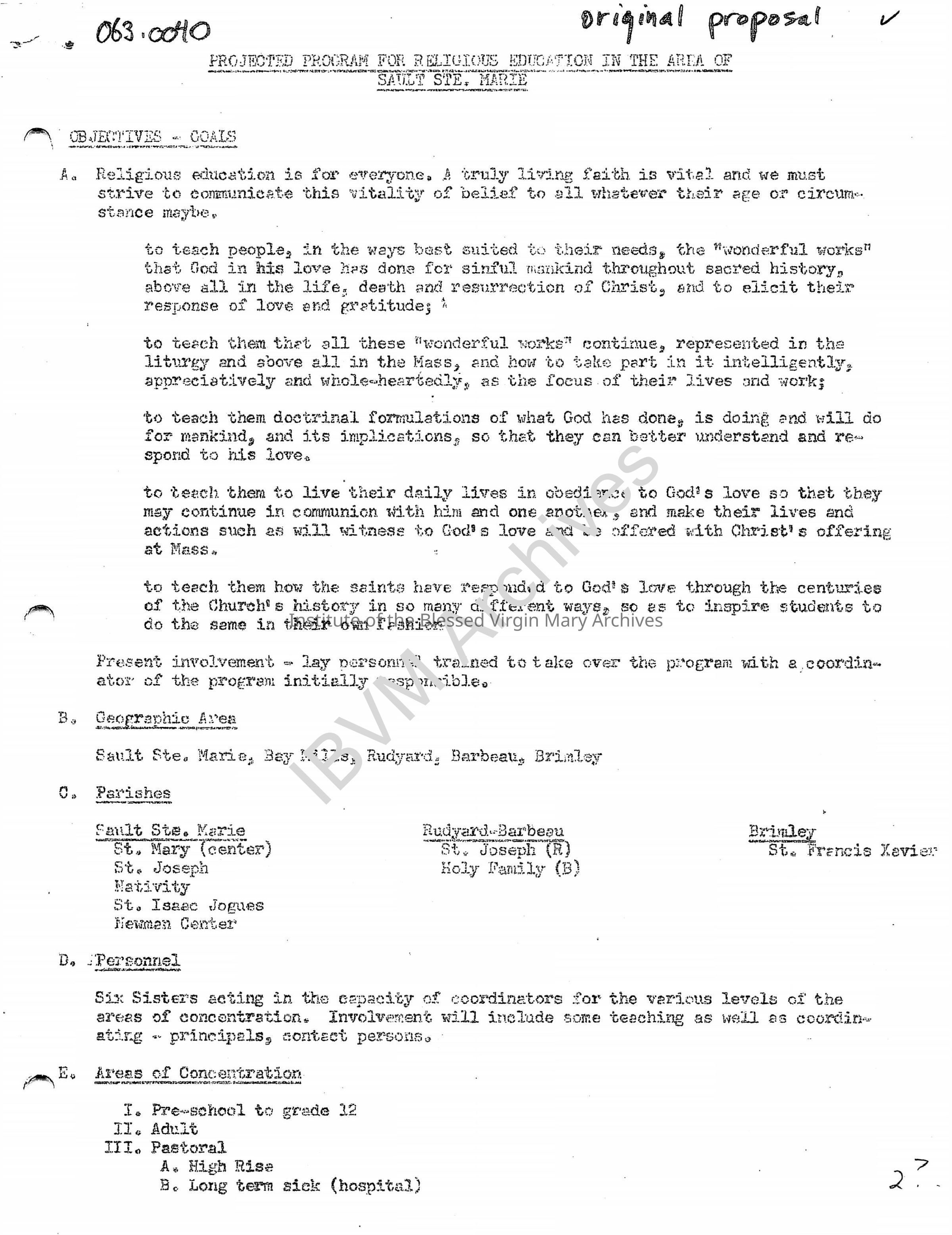 Projected Program for Religious Education in the Area of Sault Ste. MarieEntry/Object ID