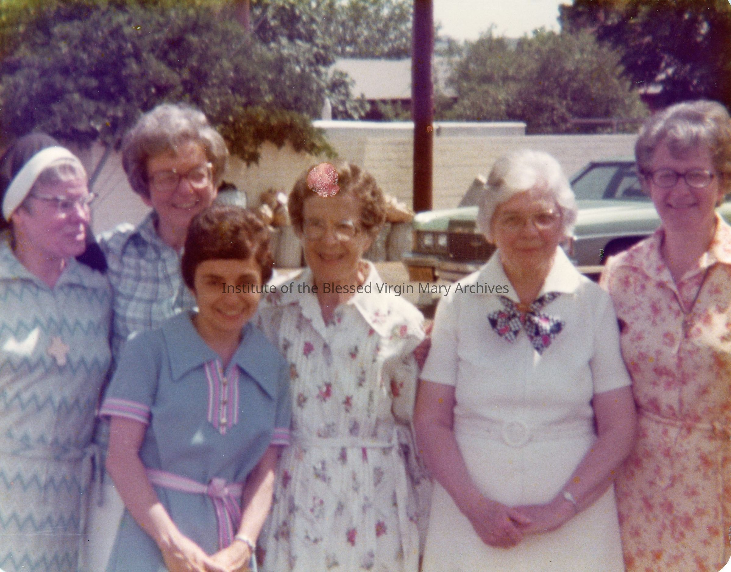Sisters gathered in Sacramento, California. From left to right are Sister Geraldine (Vivian) Bliss, Sister Mary Catherine (Jeanette) Shean, Sister Mary Lou (St. Anthony) Poerio, Sister Beatrice (Justina) Malone, Sister Mary Elizabeth (Benita) Bannon and Sister Margaret (Marietta) Brummel.Context