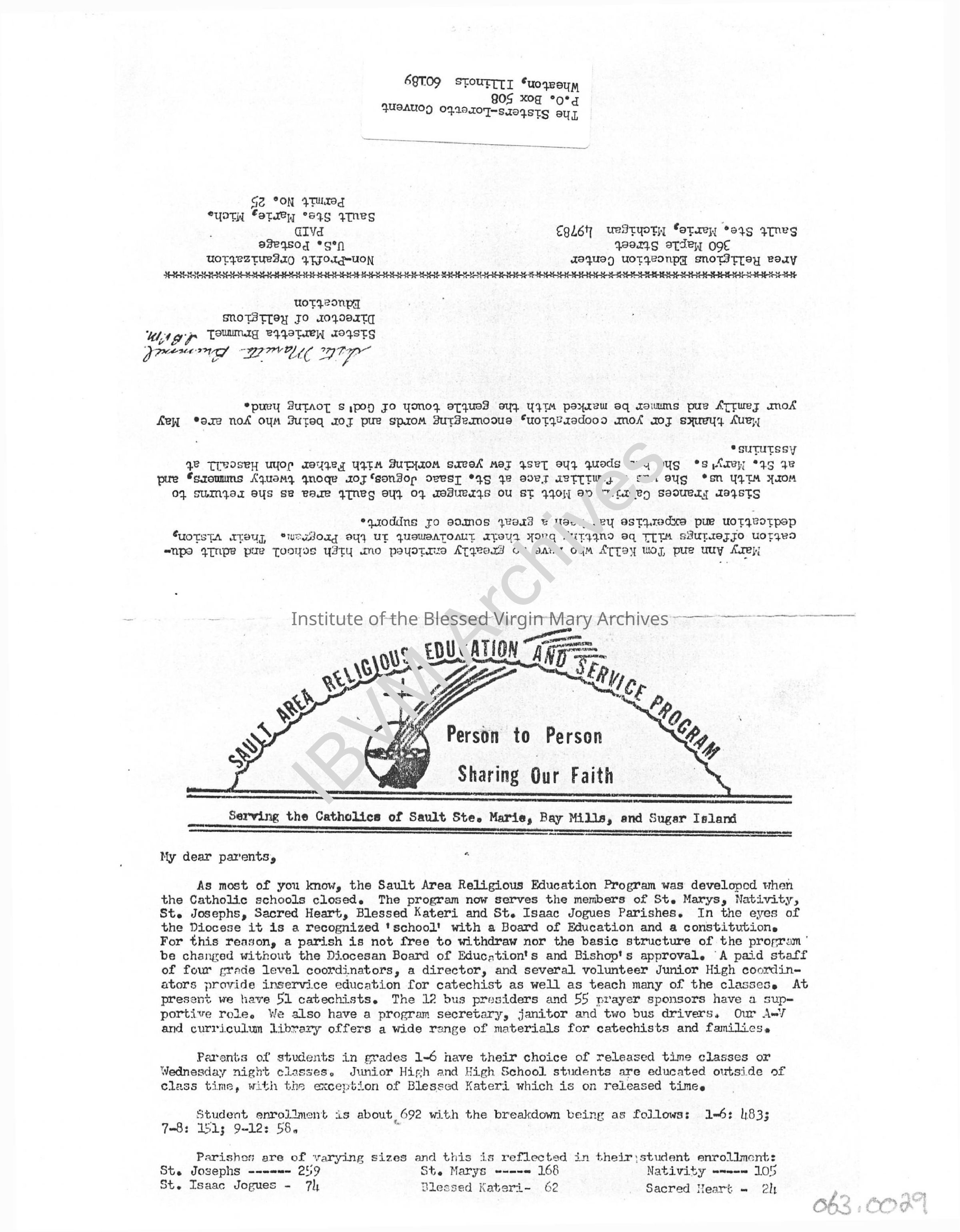 Sault Area Religious Education and Service Program NewsletterEntry/Object ID