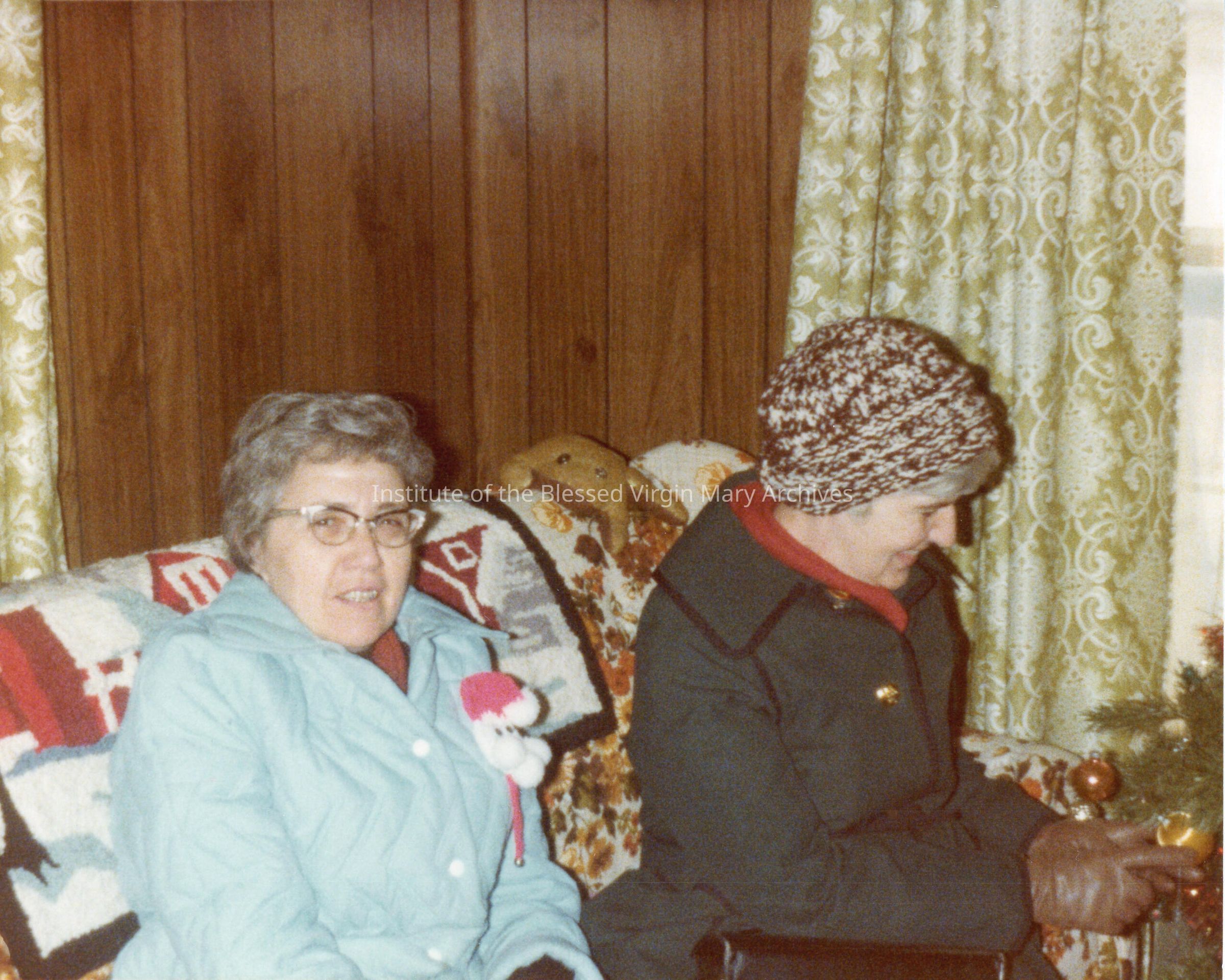 Sister Irene (Pierre) Howell, left, and Sister Therese (Peter Claver) Rooney, right, in Assinins, Michigan. The two women were the first IBVM Sisters to minister in the community.