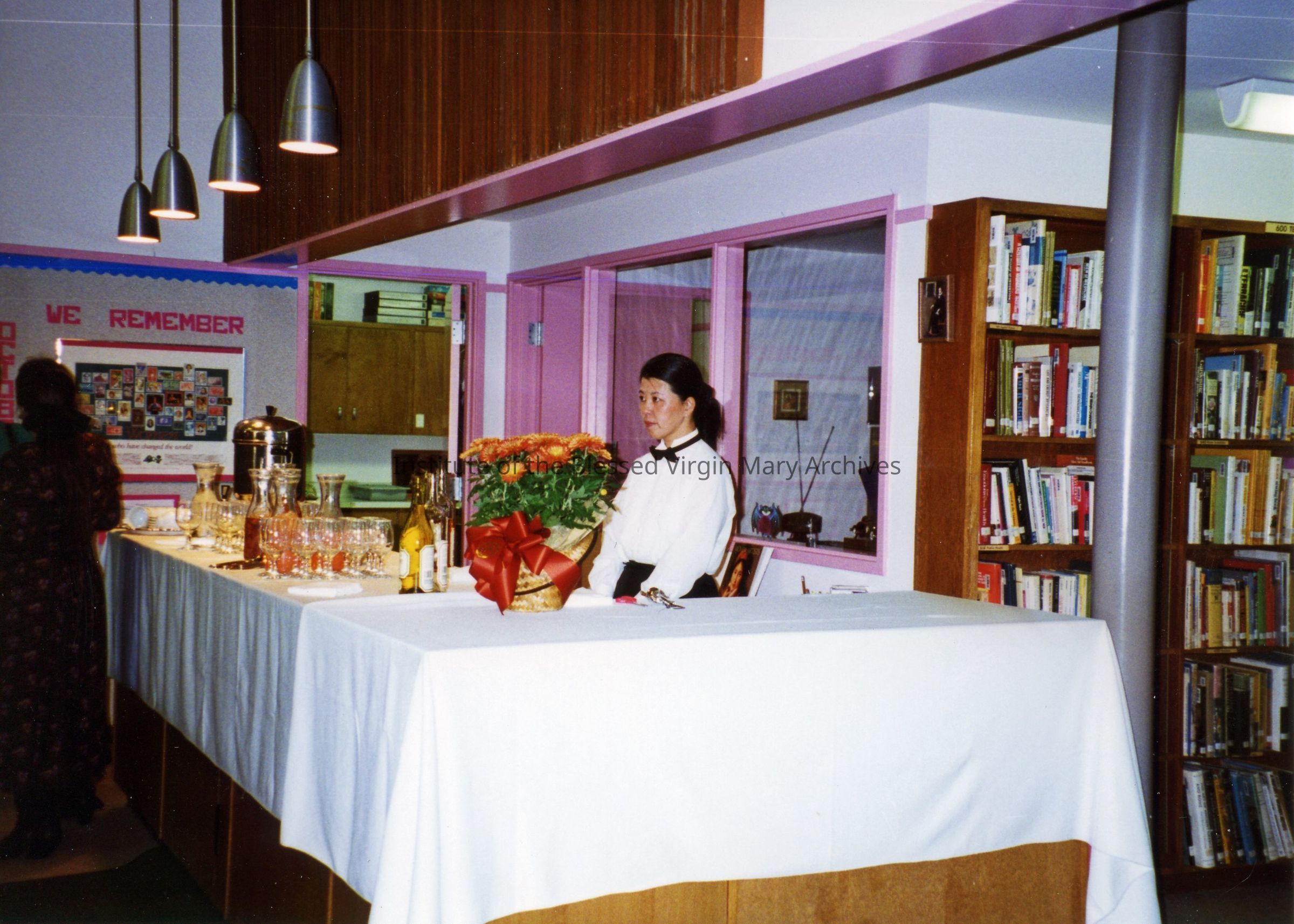 Gathering for Sister Margaret (Aileen) O'Connor and Sister Rita (Francis de Sales) Clarke. This event commemorated Sister Margaret's 60th Jubilee and Sister Rita's 51st Jubilee. The celebration took place in the library at Loretto High School in Sacramento, California.