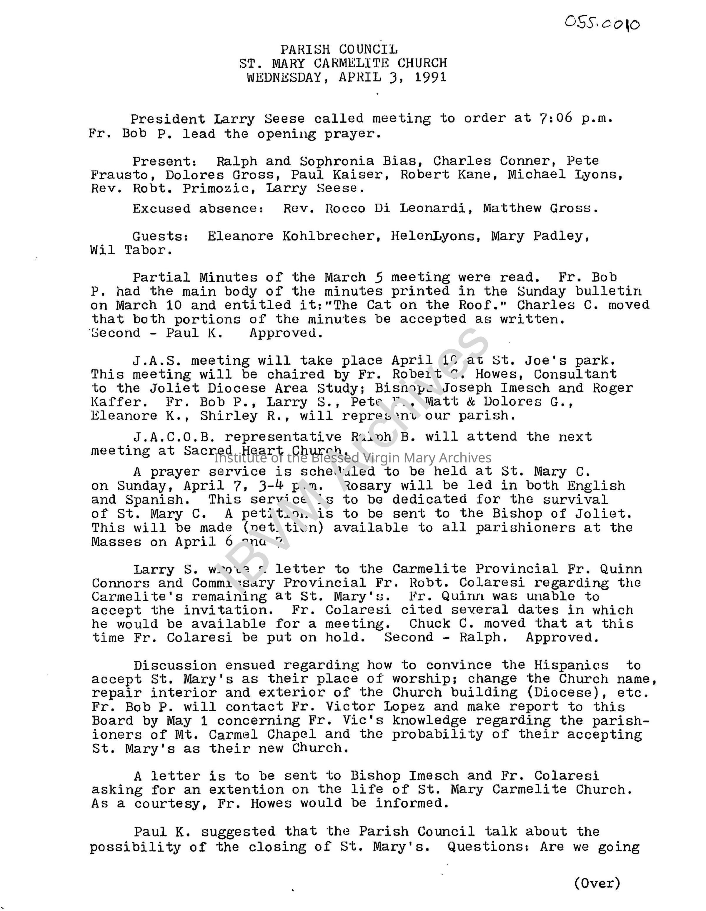 St. Mary's Carmelite Church Parish Council MinutesEntry/Object ID