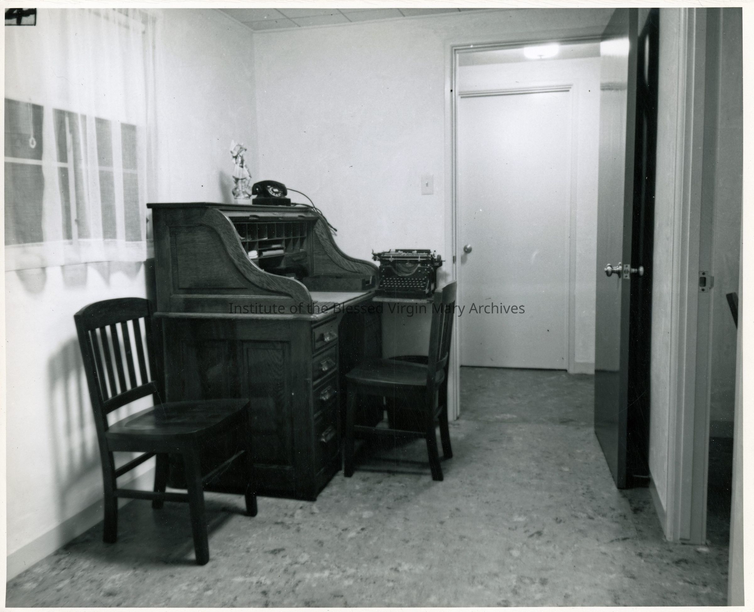 St. Philomene's Convent located at 2320 El Camino Avenue in Sacramento, California. This image features a desk and typewriter.