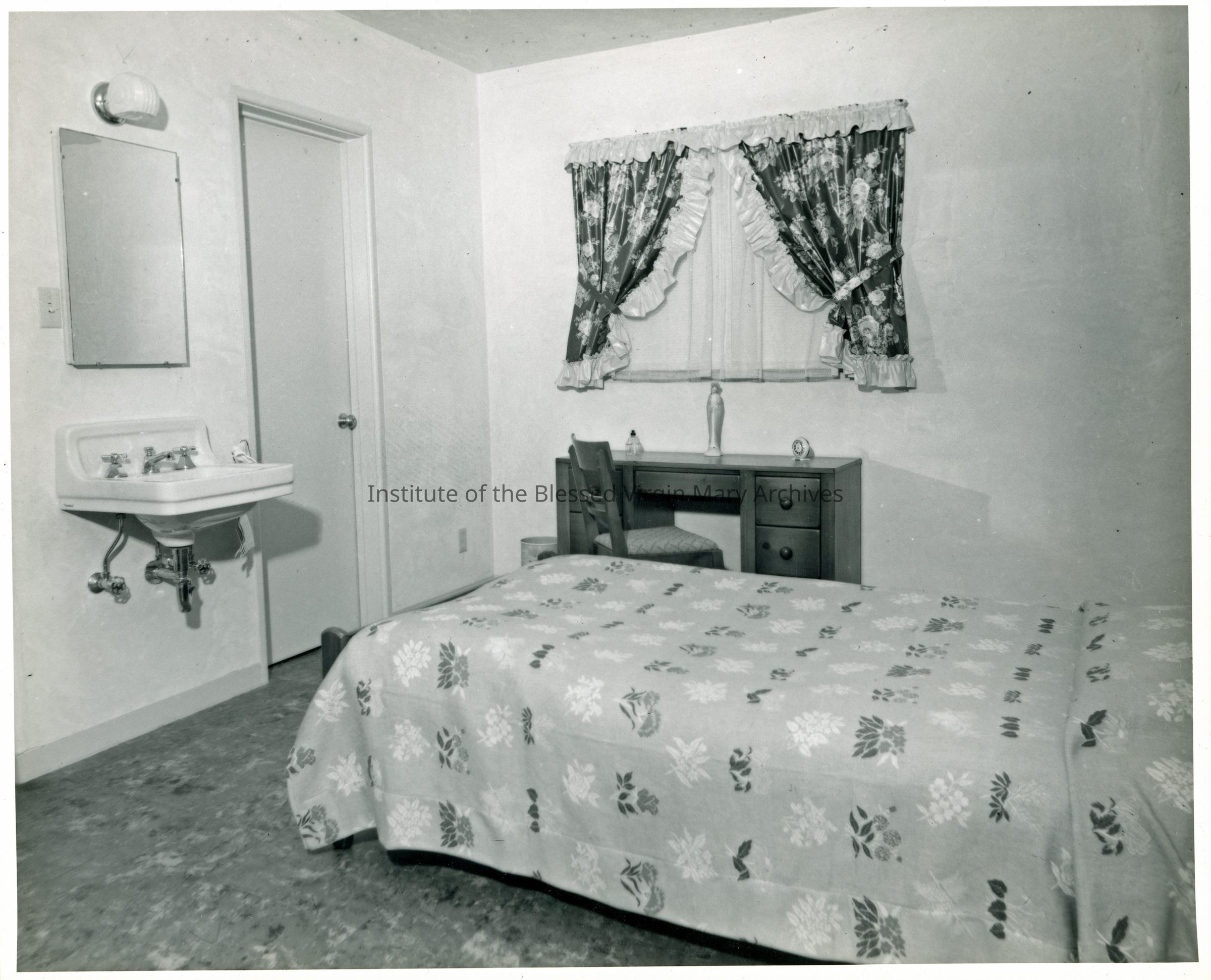 St. Philomene's Convent located at 2320 El Camino Avenue in Sacramento, California. This image features a bedroom.