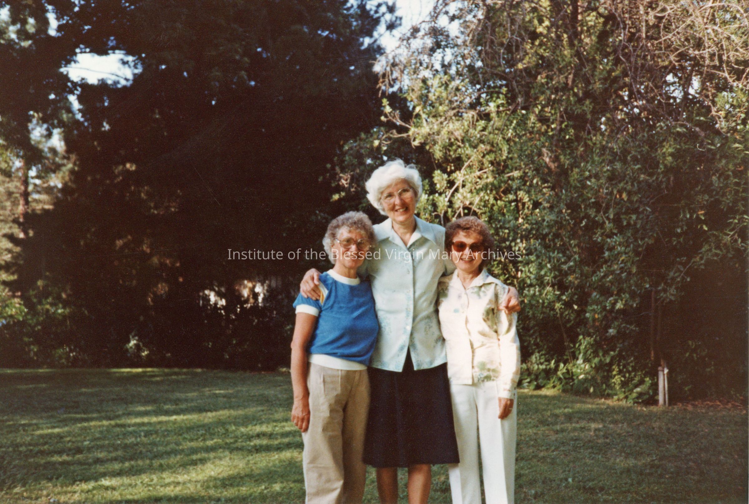 IBVM Sisters attending the St. Philomene's picnic in Sacramento, California. From left to right are Sister Edith (Blanche) Turgeon, Sister Ruth (Aloyse) Hackett and Sister Rita (Francis de Sales) Clarke.