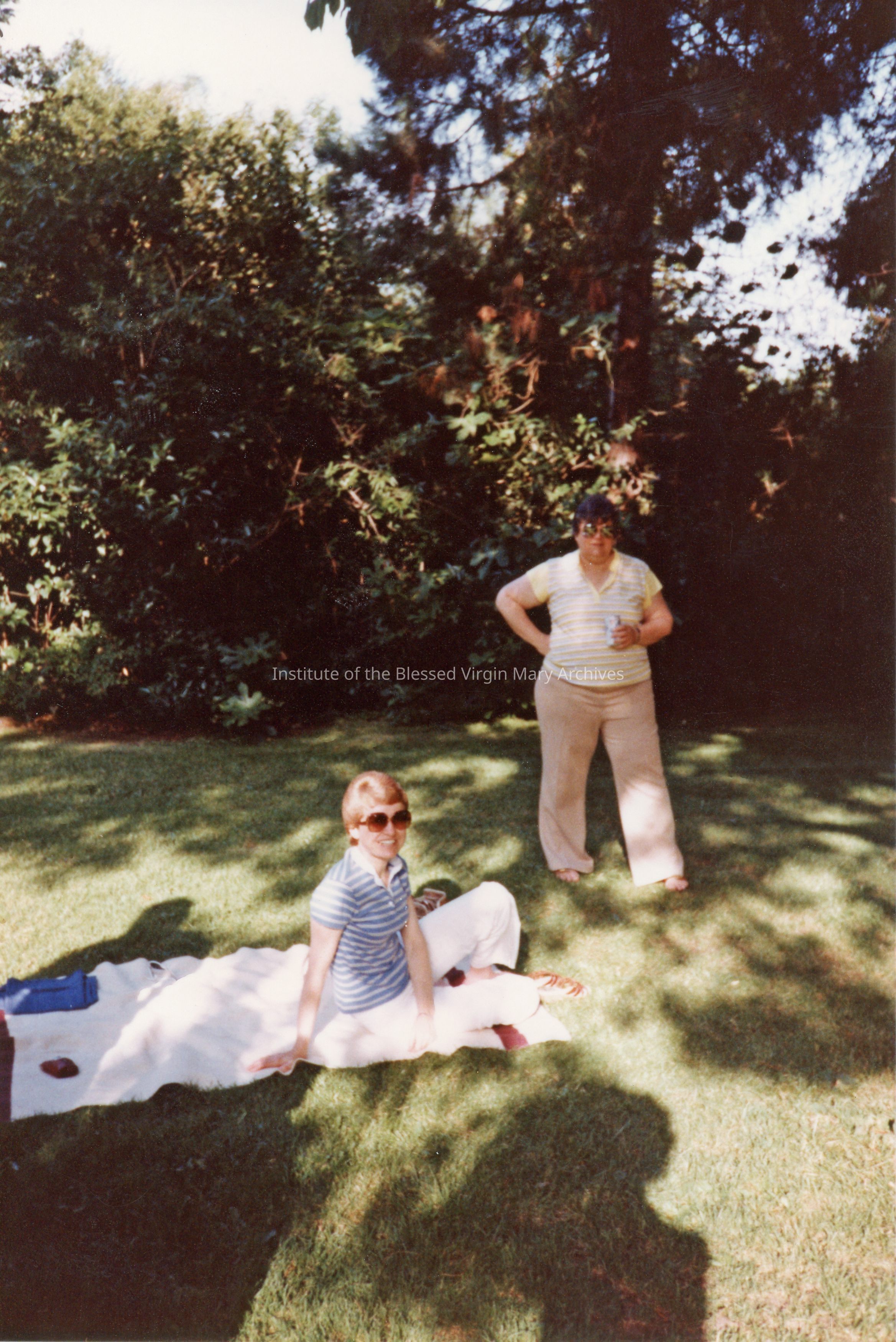 IBVM Sisters attending the St. Philomene's picnic in Sacramento, California. From left to right are Sister Frances (Maria Regina) Bierer and Sister Jean Frye.