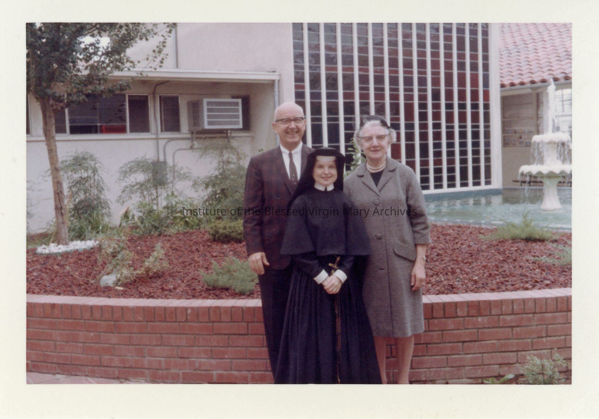 St. Philomene's School located at 2320 El Camino Avenue in Sacramento, California. This image features Sister Rita (Francis de Sales) Clarke with her parents.