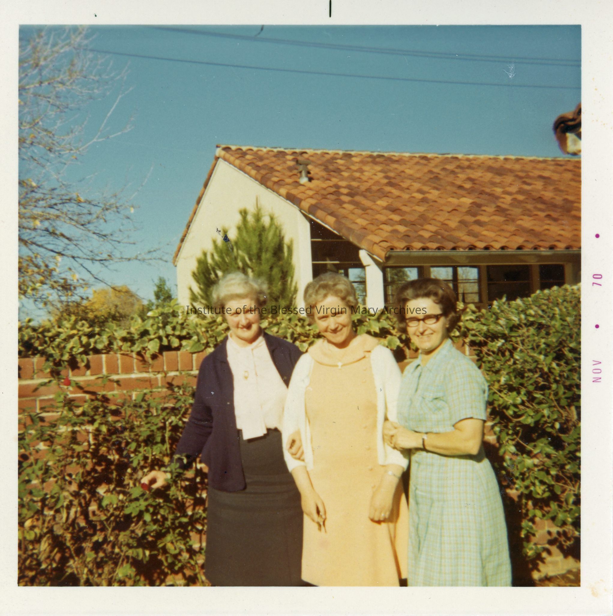 St. Philomene's Convent located at 2320 El Camino Avenue in Sacramento, California. This image features, from left to right, Sister Patricia (Anastasia) O'Connor, Sister Josephine (Jude) O'Brien and Sister Mildred Weinberger.