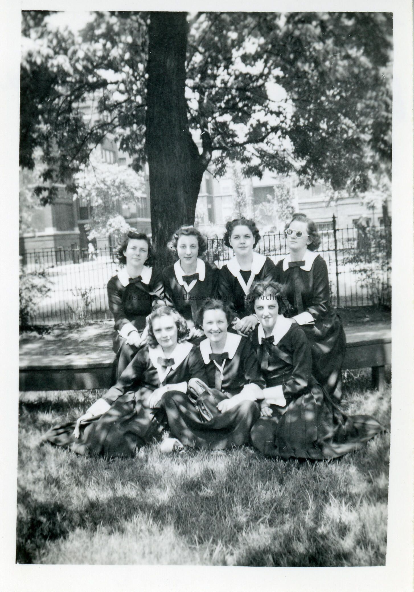 Students at Loretto Academy Woodlawn. Back Row: Veronica Tierney, Eileen Fitzpatrick, Alice O'Connor and Mary Murphy. Front Row: Betty Boyter, Mary Markby and Josephine Carrier.