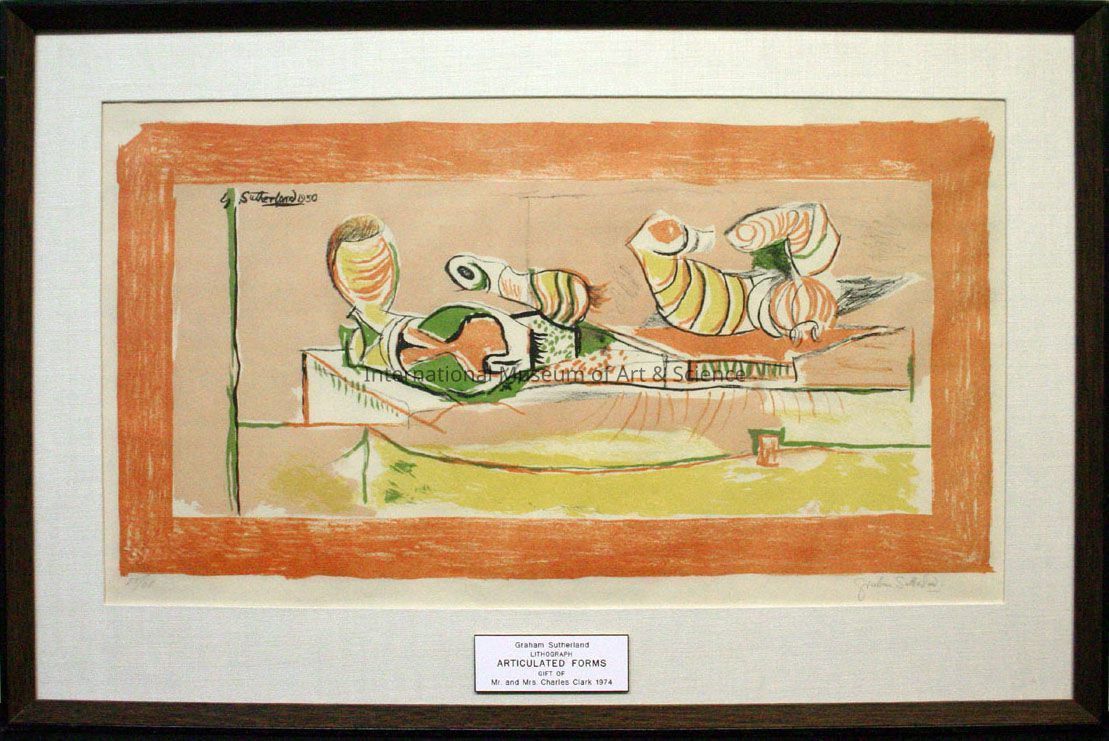 "Articulated Forms". Lithograph. 55/60, Organic forms in yellow, green, and orange. Date unknown.Dimensions