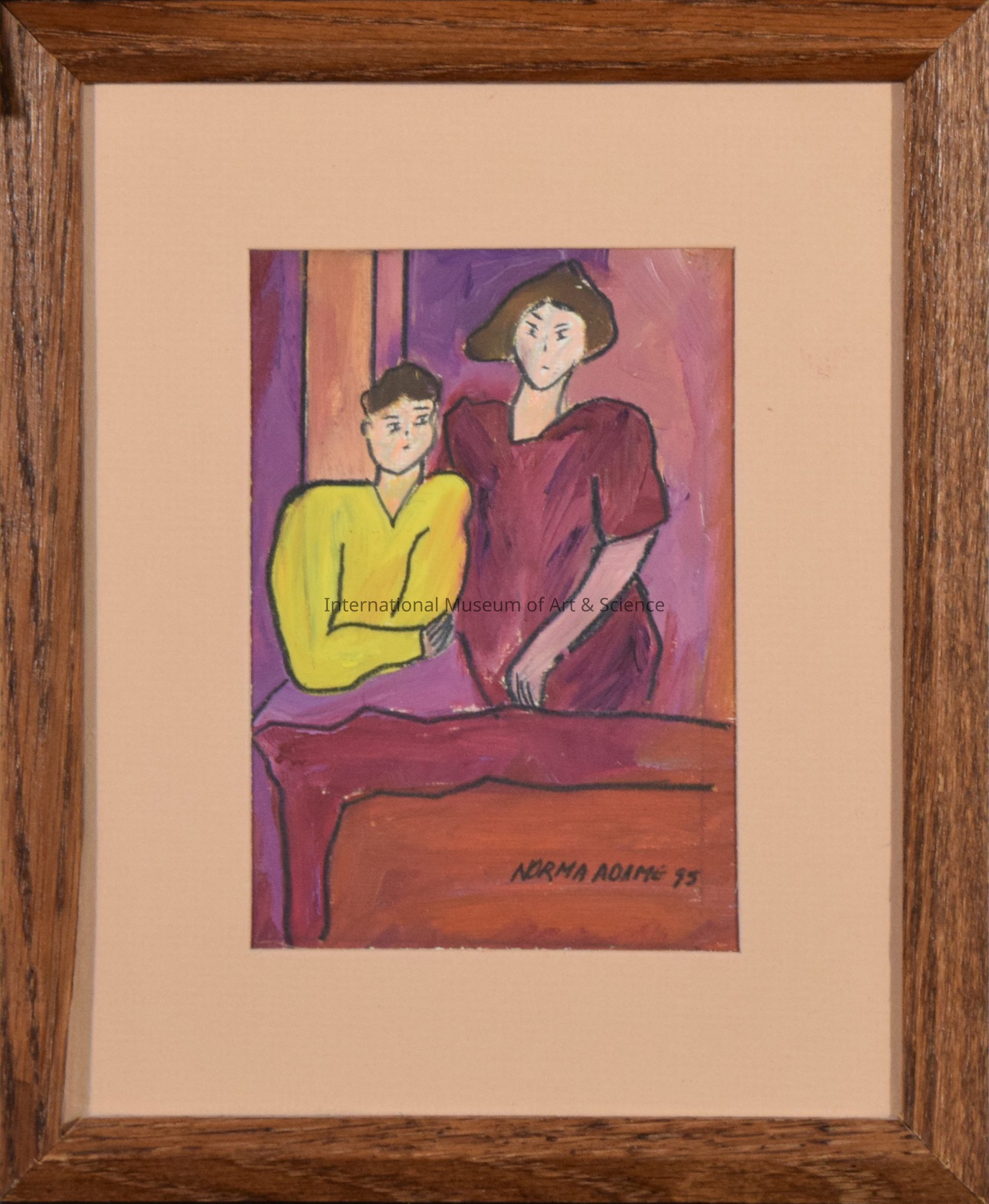 Autorretraro. Norma Adame. Acrylic and oil on paper. Painting of boy and woman.