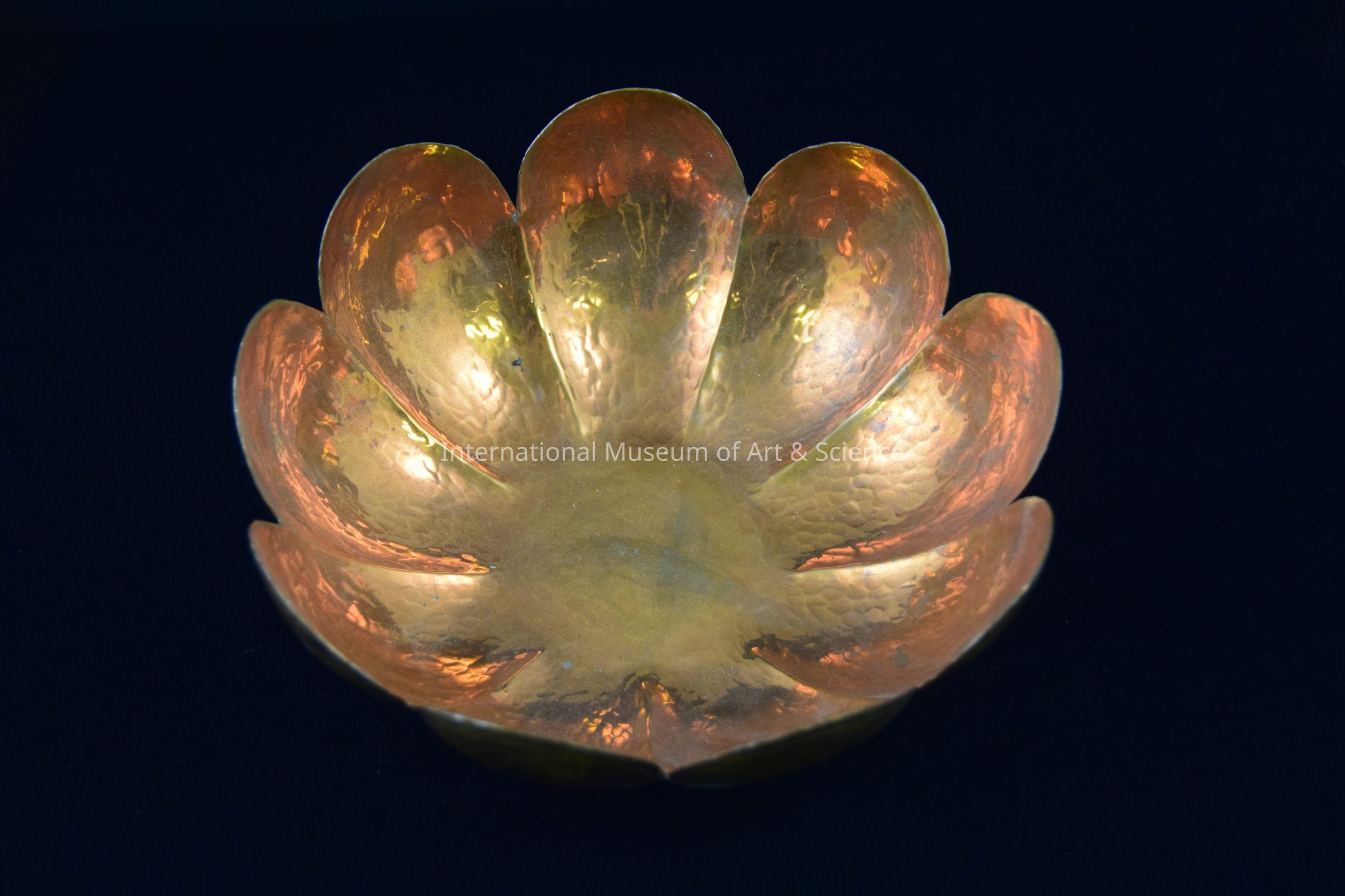 Bowl. Designed in the form of a flower; scalloped lip and top edge; hammered texture interior brighter (due to lacquer).Dimensions