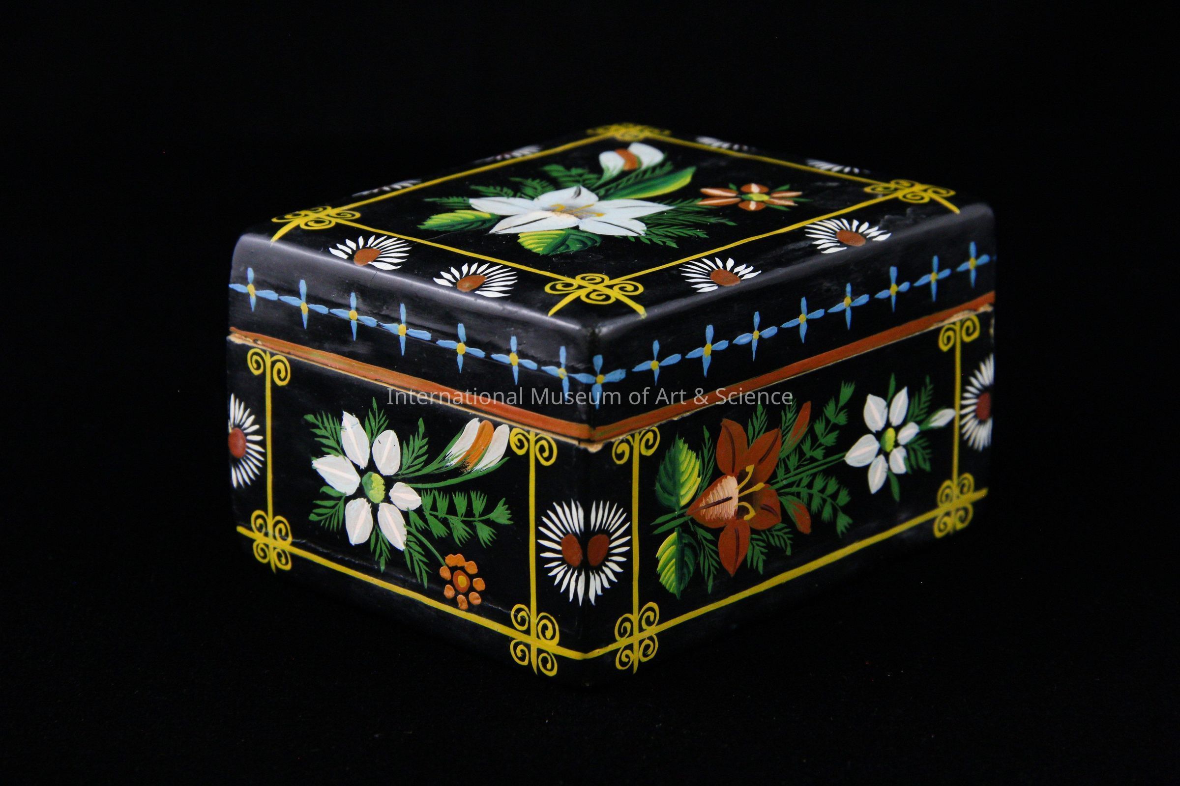 A wood lacquered rectangular box with flowers.Artwork Details