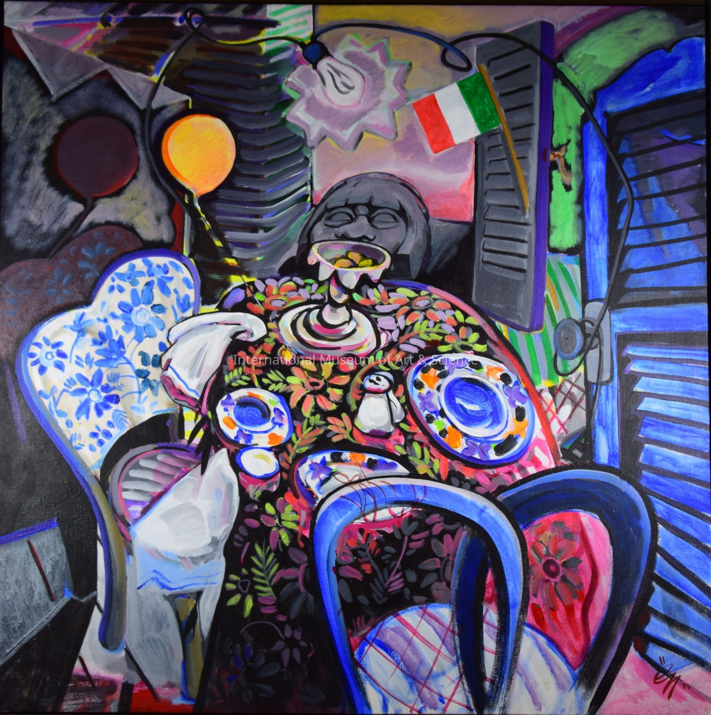 "Breakfast in Oaxaca", E. E. Nichols; acrylic on canvas. Painting begun after a Christmas 1974 trip to Oaxaca. Museum has slide set documenting total development of painting plus tape recording by artist.Artwork Details