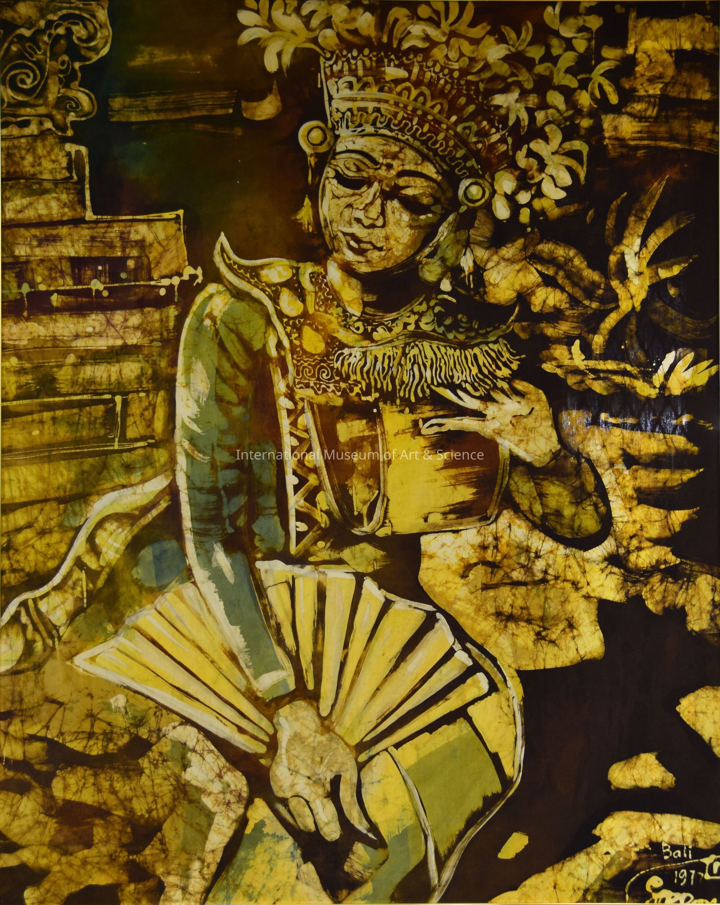 A balik painting. The piece is executed in hues of brown with green and olive accents. It depicts a young boy wearing a crown, holding a fan on his lap and appears to be examining a "chest guard (?)" on his upper torso.Artwork Details
