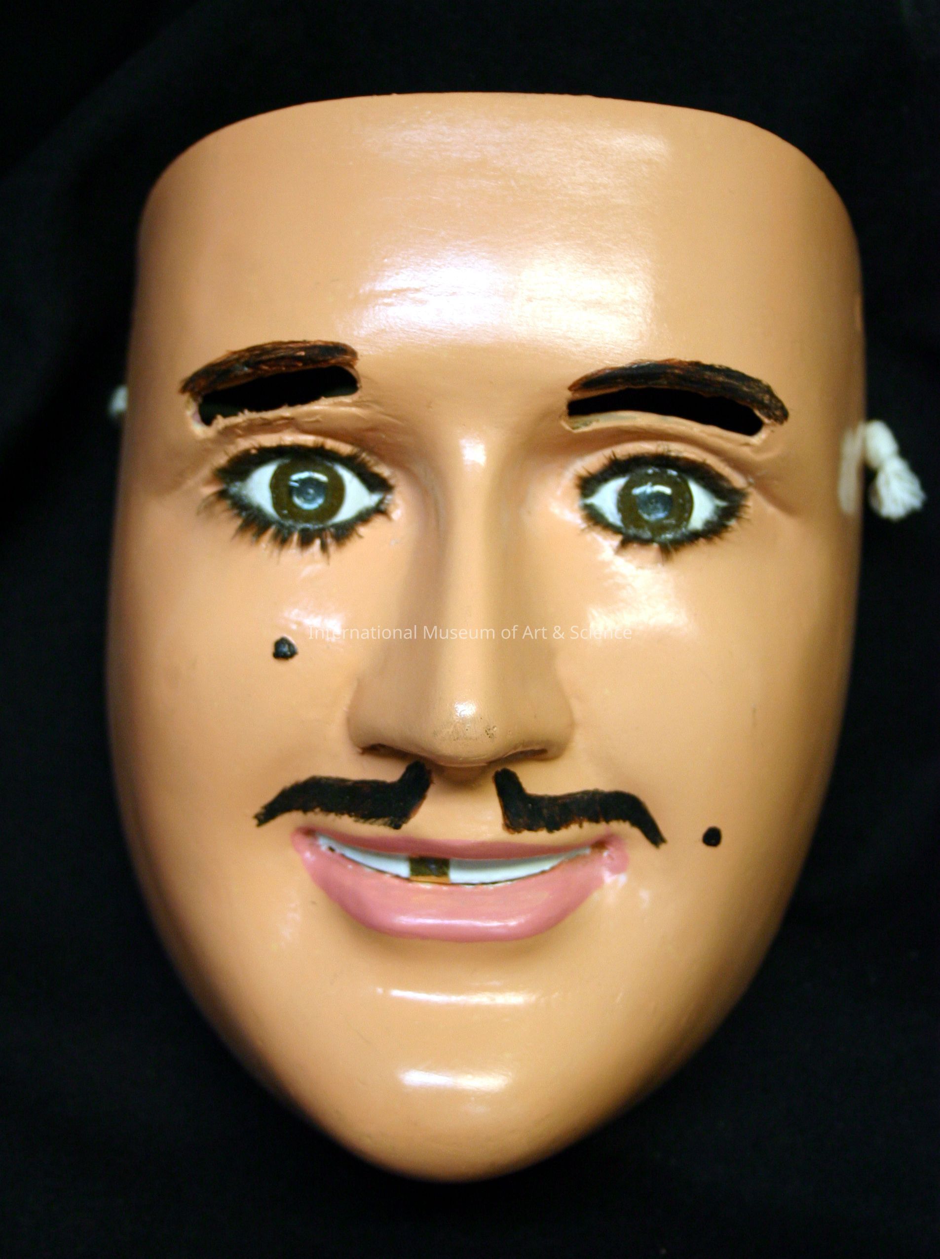 Carnival Mask. Mask of man's face, orange flesh-colored; brown glass eyes with real lashes; gold tooth. Two black spots painted eyebrows and moustache.Artwork Details