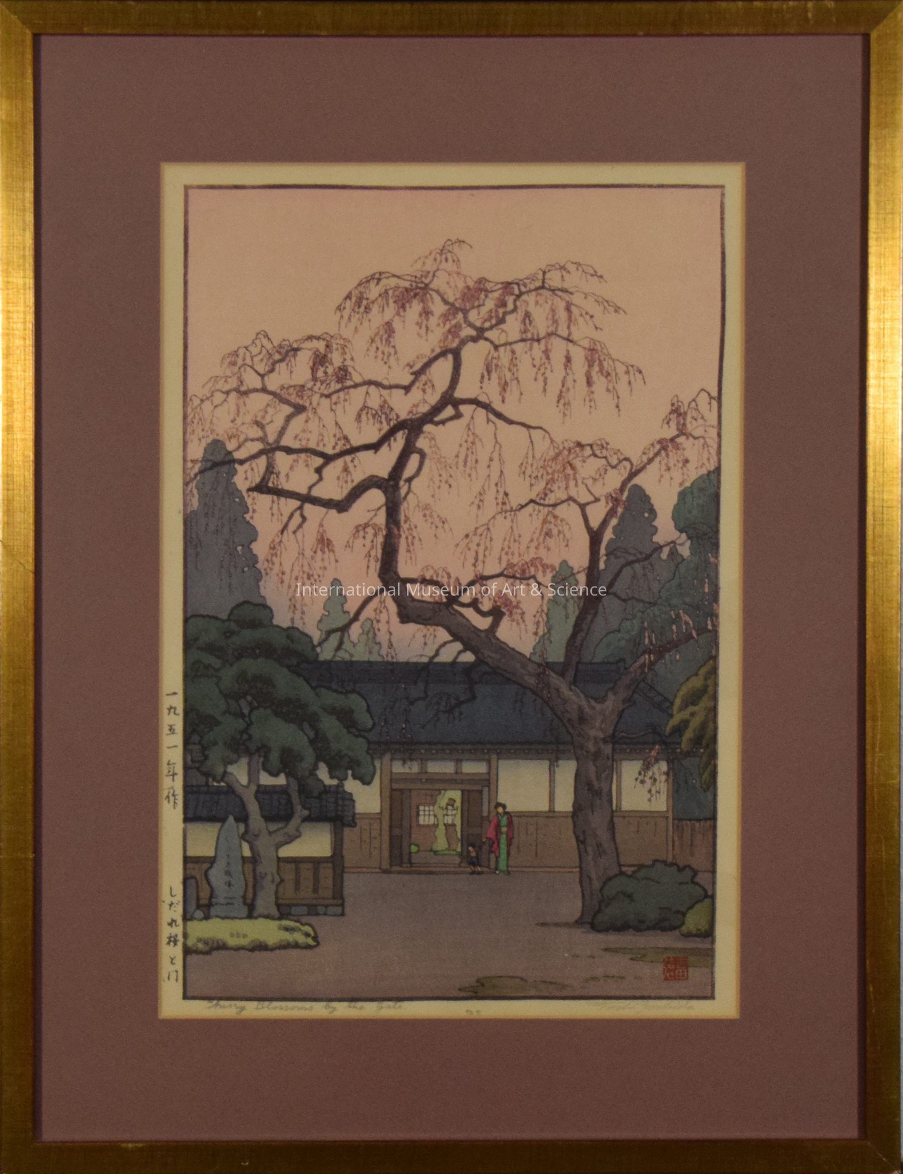 "Cherry Blossoms by the Gate". Toshi Yoshida, Japan (ca. 1951). Original color woodcut; signed; unumbered edition.Artwork Details