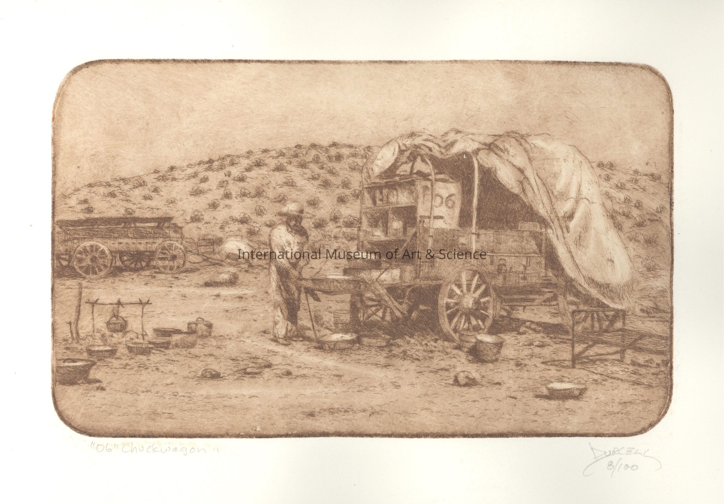 "Chuckwagon". Original etching, signed, #8 of edition of 100. Biographic data on artist attached.