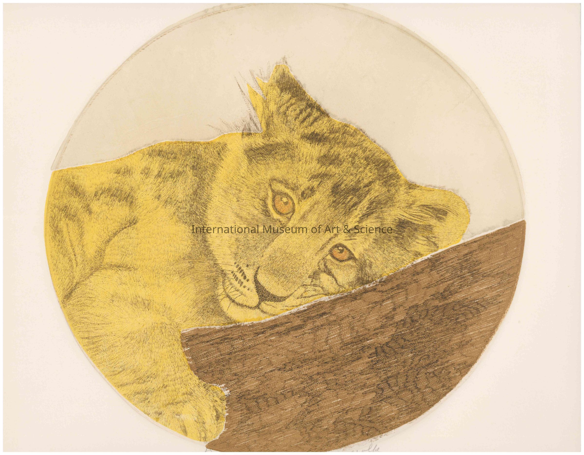 "Day Dream" - Original color etching, signed, #55 of 200 ed. Depicts a tiger bordered by a circle.