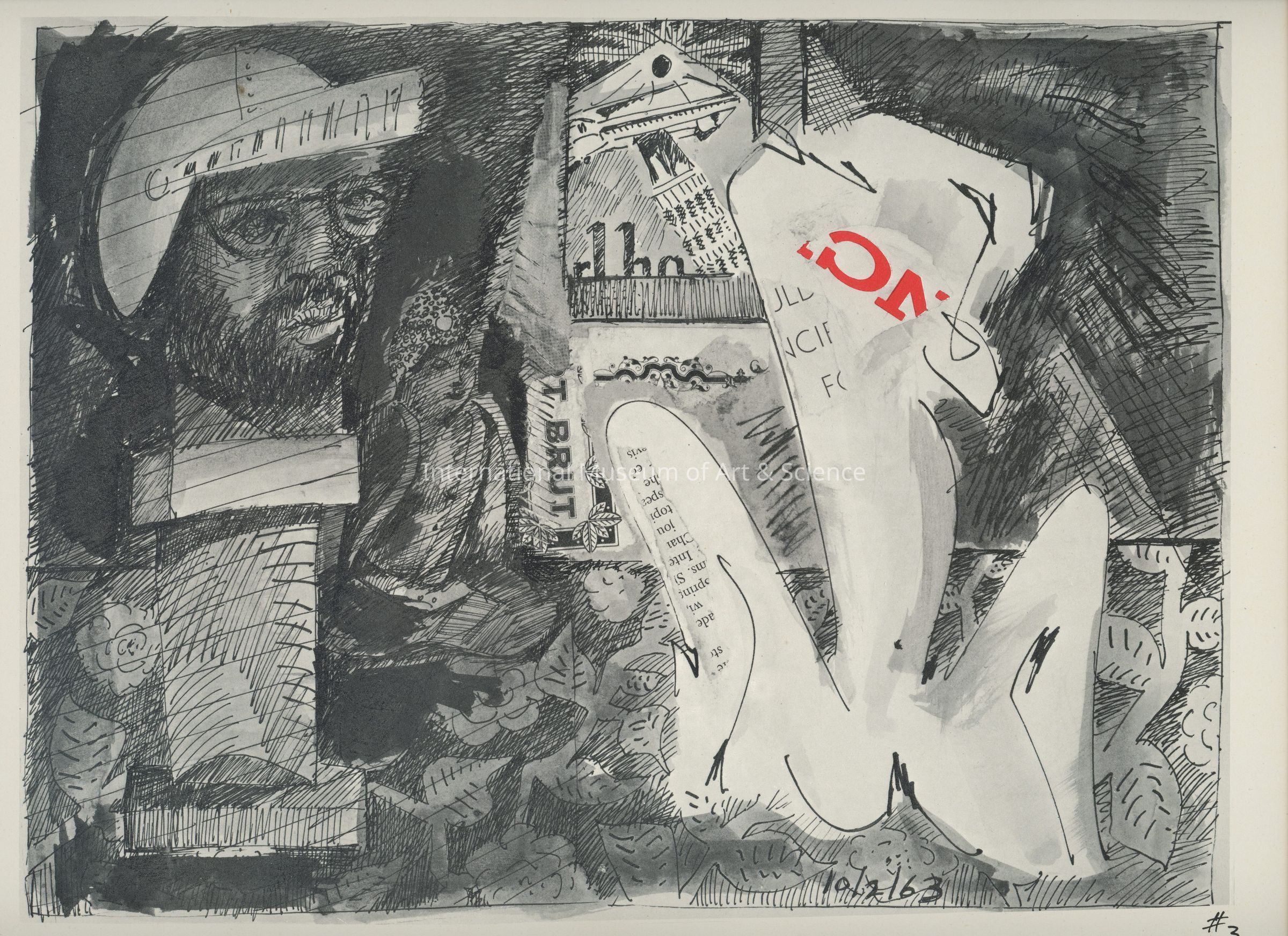 A offset lithograph. This print is part of a 169 piece set entitled: Death is All the Time. The prints are divided into two parts and then sub-grouped again. Part I: Events (Drawings 1 - 52). Prints 1 through 10 are entitled: We Two.