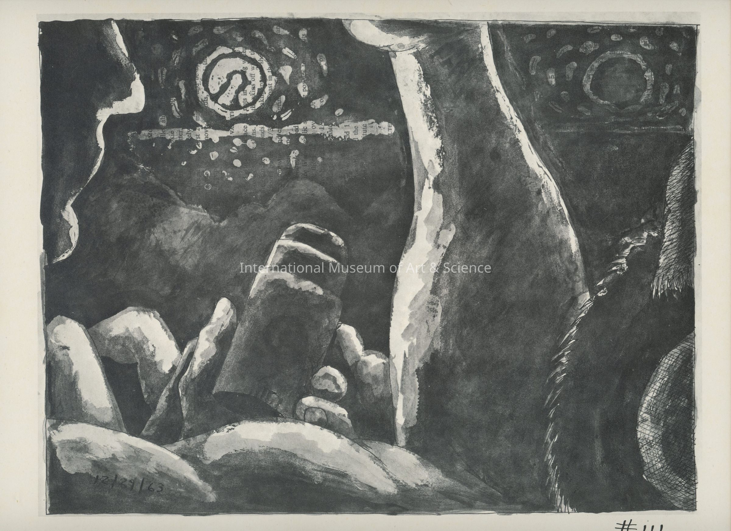 A offset lithograph. This print is part of a 169 piece set entitled: Death is All the Time. The prints are divided into two parts and then sub-grouped again. Part II: Aftermath (Drawings 53 - 169). Prints 91 through 131 are entitled: Nox-Dies or "Night-Dies". 106 through 131 are sub-titled: Night (Nox).
