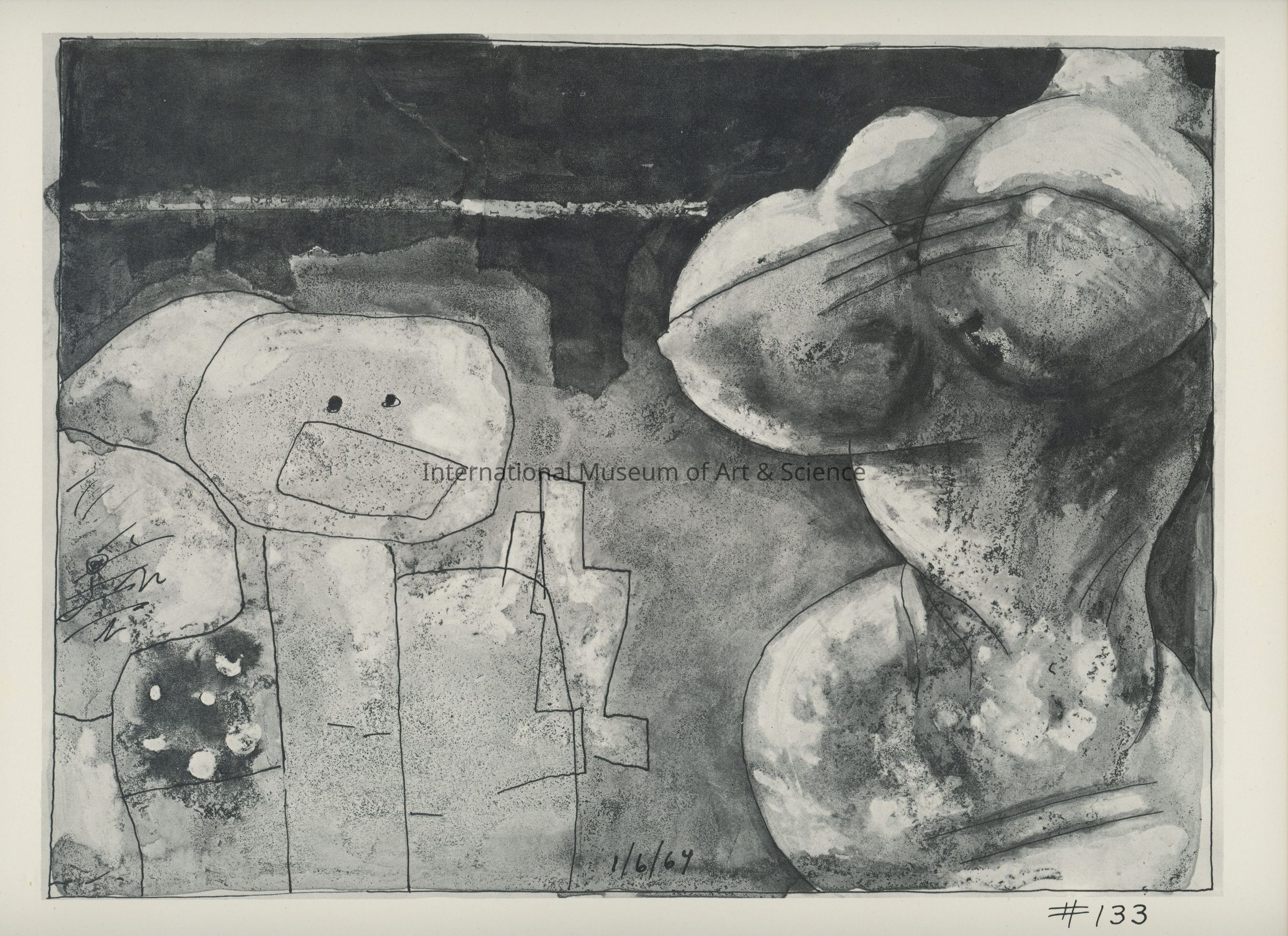 A offset lithograph. This print is part of a 169 piece set entitled: Death is All the Time. The prints are divided into two parts and then sub-grouped again. Part II: Aftermath (Drawings 53 - 169). Prints 132 through 151 are entitled: A Child's Nightmares of War.