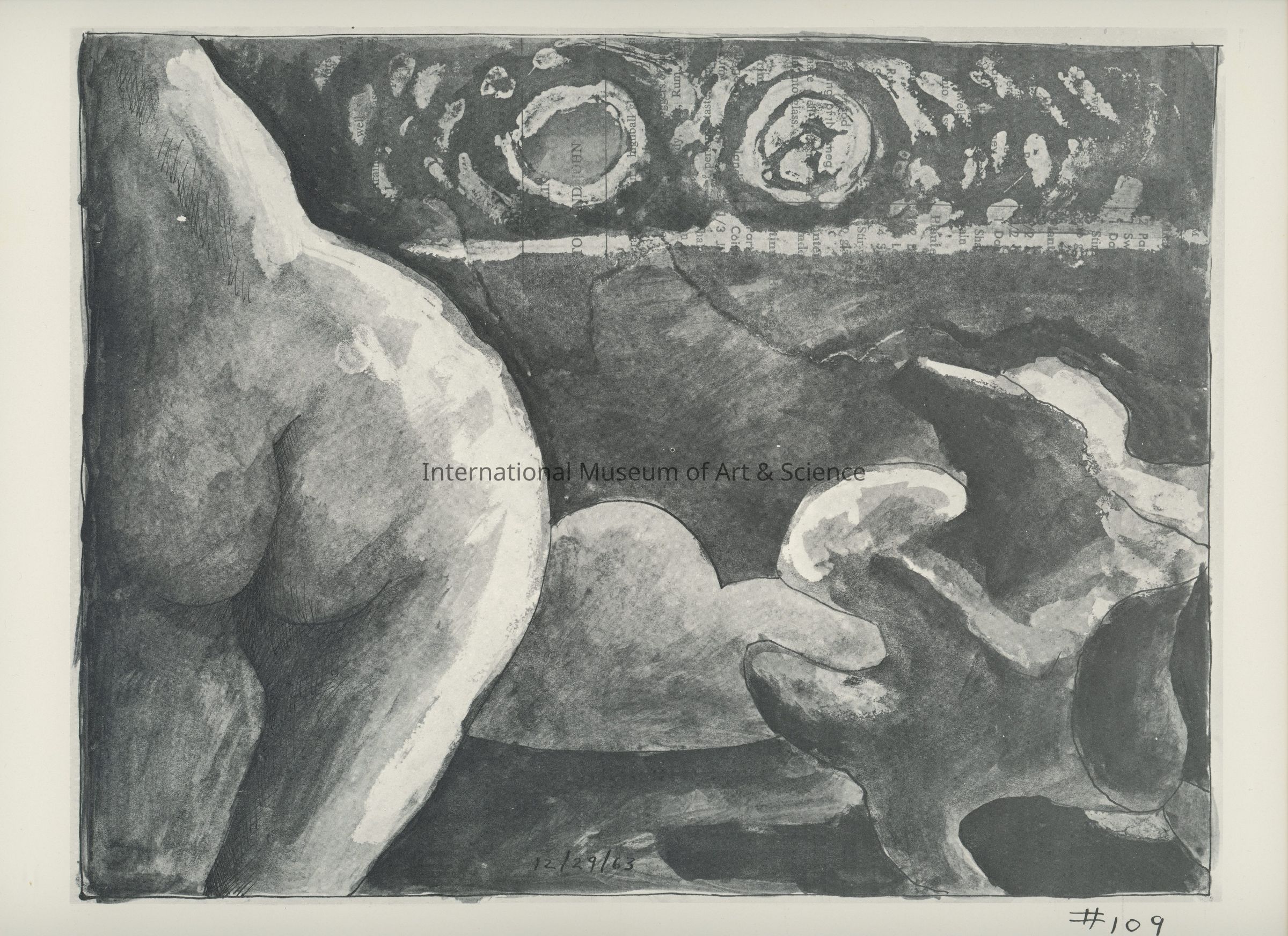 A offset lithograph. This print is part of a 169 piece set entitled: Death is All the Time. The prints are divided into two parts and then sub-grouped again. Part II: Aftermath (Drawings 53 - 169). Prints 91 through 131 are entitled: Nox-Dies or "Night-Dies". 106 through 131 are sub-titled: Night (Nox).