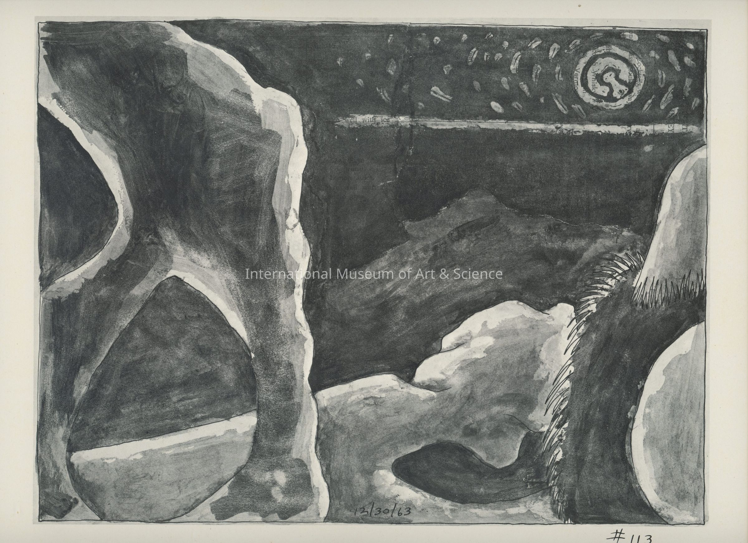 A offset lithograph. This print is part of a 169 piece set entitled: Death is All the Time. The prints are divided into two parts and then sub-grouped again. Part II: Aftermath (Drawings 53 - 169). Prints 91 through 131 are entitled: Nox-Dies or "Night-Dies". 106 through 131 are sub-titled: Night (Nox).