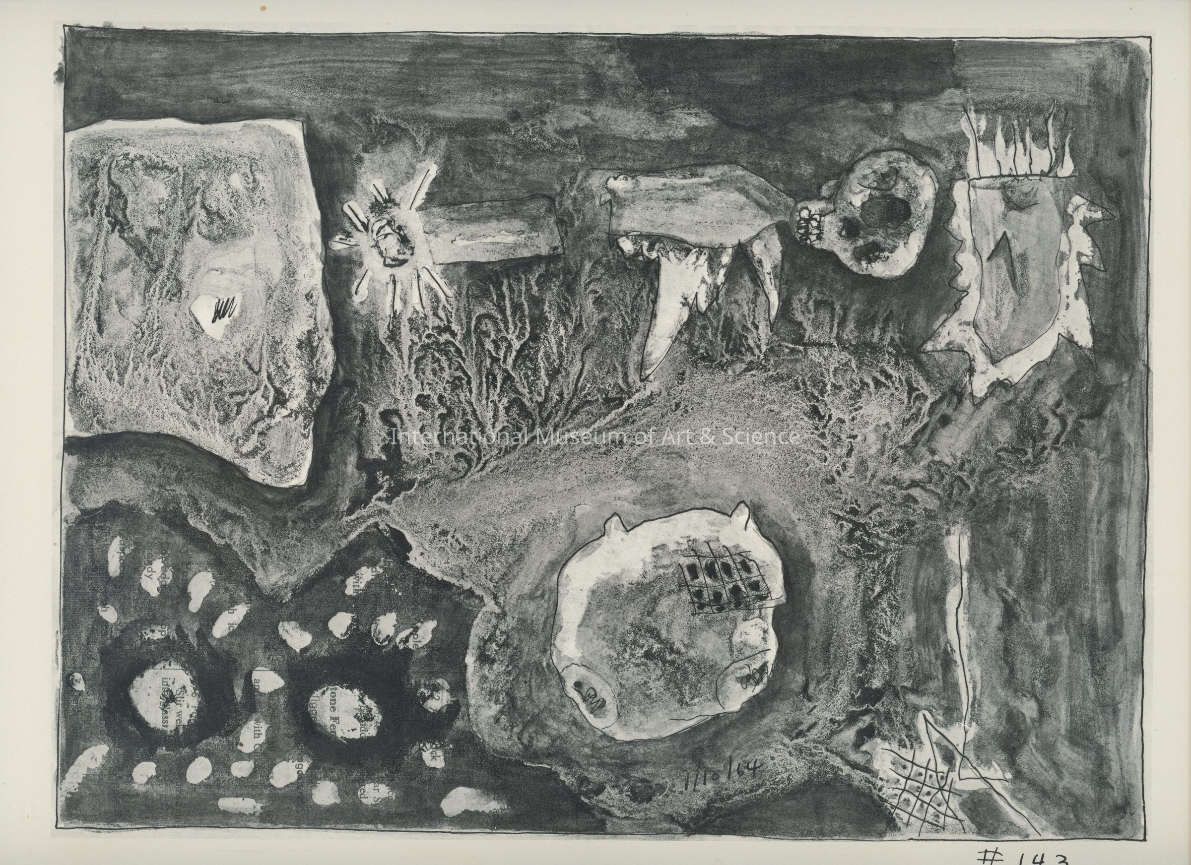 A offset lithograph. This print is part of a 169 piece set entitled: Death is All the Time. The prints are divided into two parts and then sub-grouped again. Part II: Aftermath (Drawings 53 - 169). Prints 132 through 151 are entitled: A Child's Nightmares of War.
