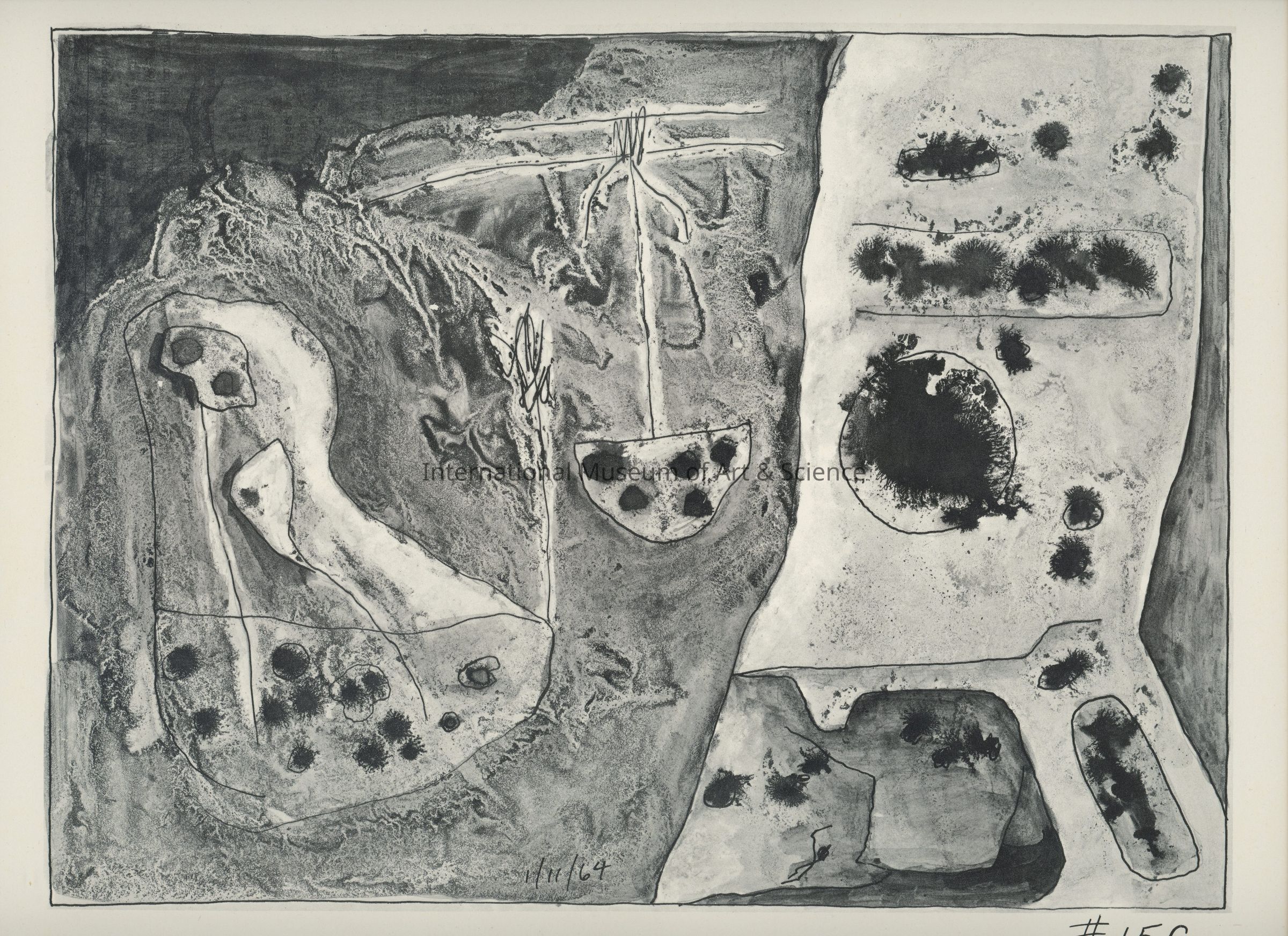 A offset lithograph. This print is part of a 169 piece set entitled: Death is All the Time. The prints are divided into two parts and then sub-grouped again. Part II: Aftermath (Drawings 53 - 169). Prints 152 through 158 are entitled: Death in the Desert.