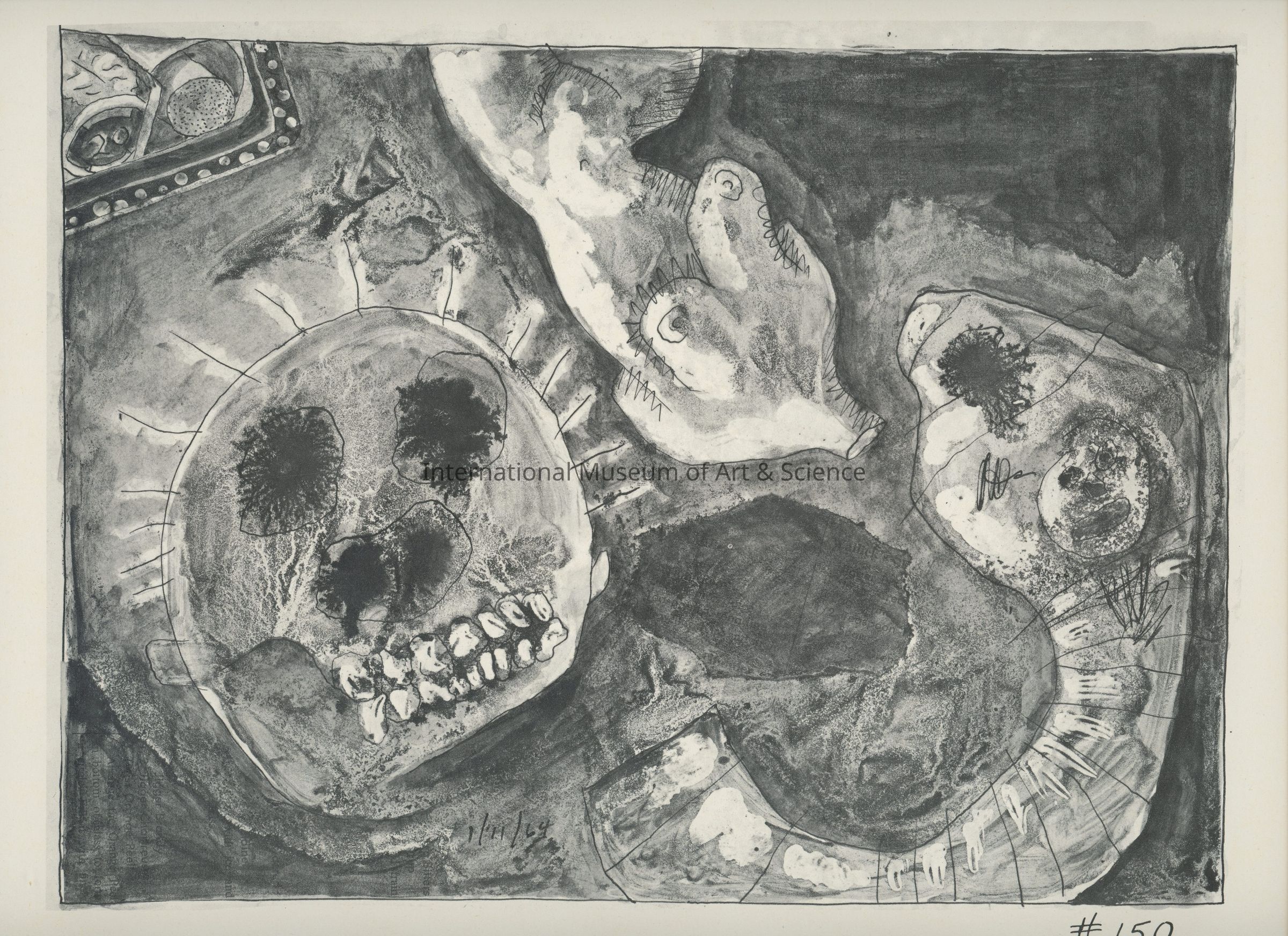 A offset lithograph. This print is part of a 169 piece set entitled: Death is All the Time. The prints are divided into two parts and then sub-grouped again. Part II: Aftermath (Drawings 53 - 169). Prints 132 through 151 are entitled: A Child's Nightmares of War.