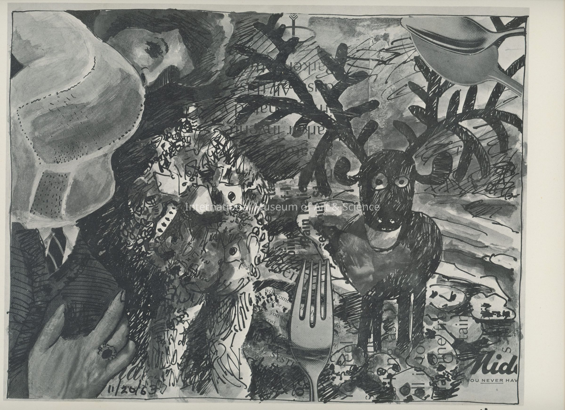 A offset lithograph. This print is part of a 169 piece set entitled: Death is All the Time. The prints are divided into two parts and then sub-grouped again. Part I: Events (Drawings 1 - 52). Prints 27 through 32 are entitled: Advertised Hell.
