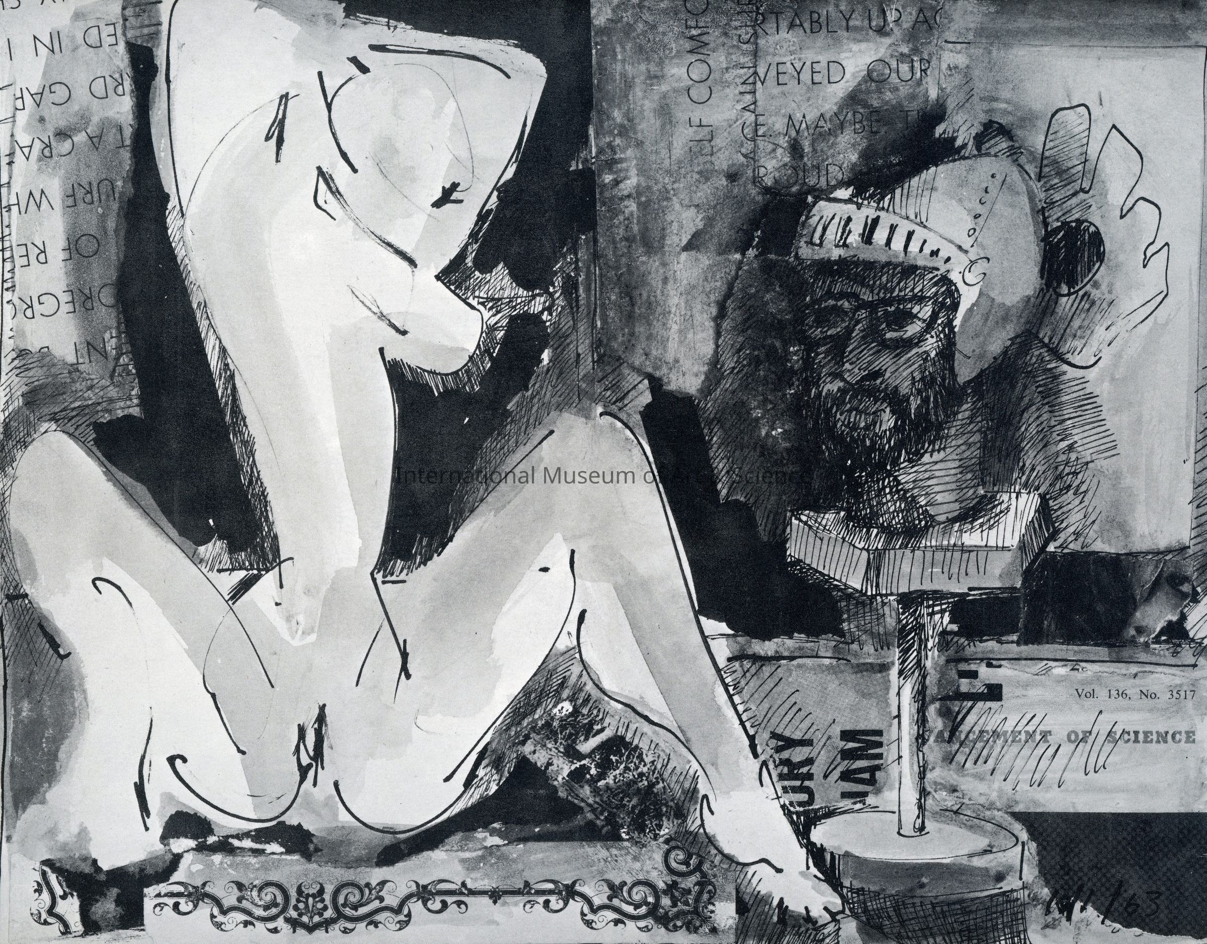 A offset lithograph. This print is part of a 169 piece set entitled: Death is All the Time. The prints are divided into two parts and then sub-grouped again. Part I: Events (Drawings 1 - 52). Prints 1 through 10 are entitled: We Two.