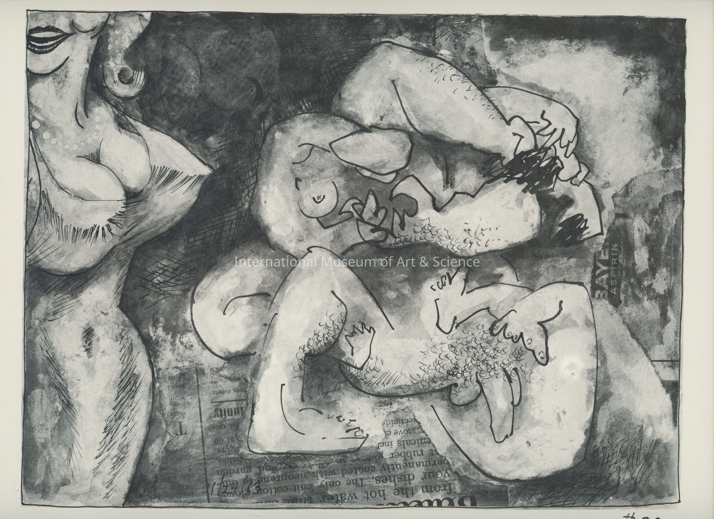 A offset lithograph. This print is part of a 169 piece set entitled: Death is All the Time. The prints are divided into two parts and then sub-grouped again. Part I: Events (Drawings 1 - 52). Prints 36 through 52 are entitled: Death of A Young Man Murdered (JFK). Prints 38 through 39 subtitled: Woman Mourns.