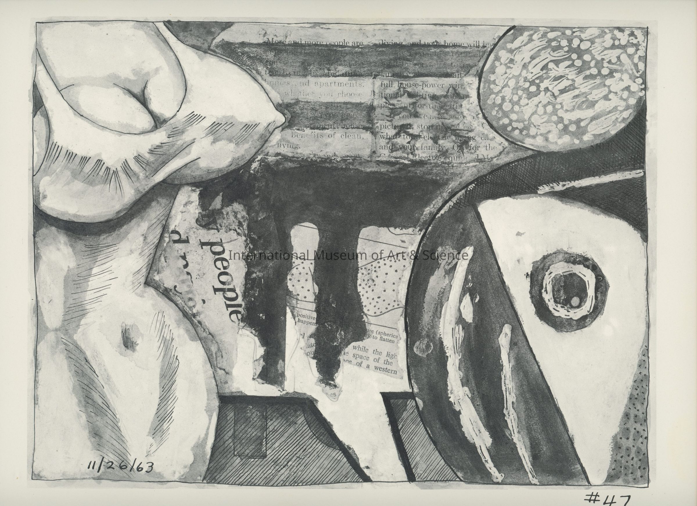 A offset lithograph. This print is part of a 169 piece set entitled: Death is All the Time. The prints are divided into two parts and then sub-grouped again. Part I: Events (Drawings 1 - 52). Prints 36 through 52 are entitled: Death of A Young Man Murdered (JFK). Prints 45 through 49 subtitled: The Nation Mourns.