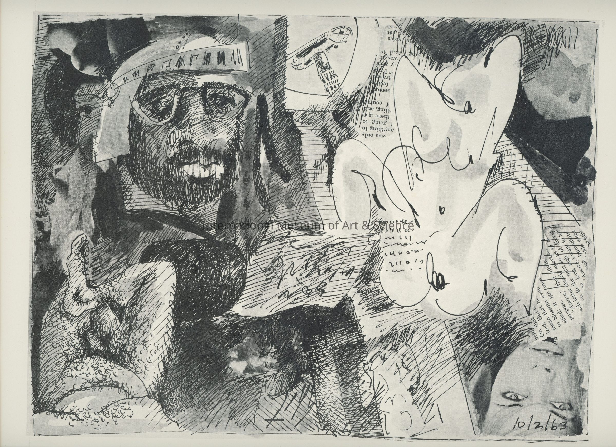 A offset lithograph. This print is part of a 169 piece set entitled: Death is All the Time. The prints are divided into two parts and then sub-grouped again. Part I: Events (Drawings 1 - 52). Prints 1 through 10 are entitled: We Two.