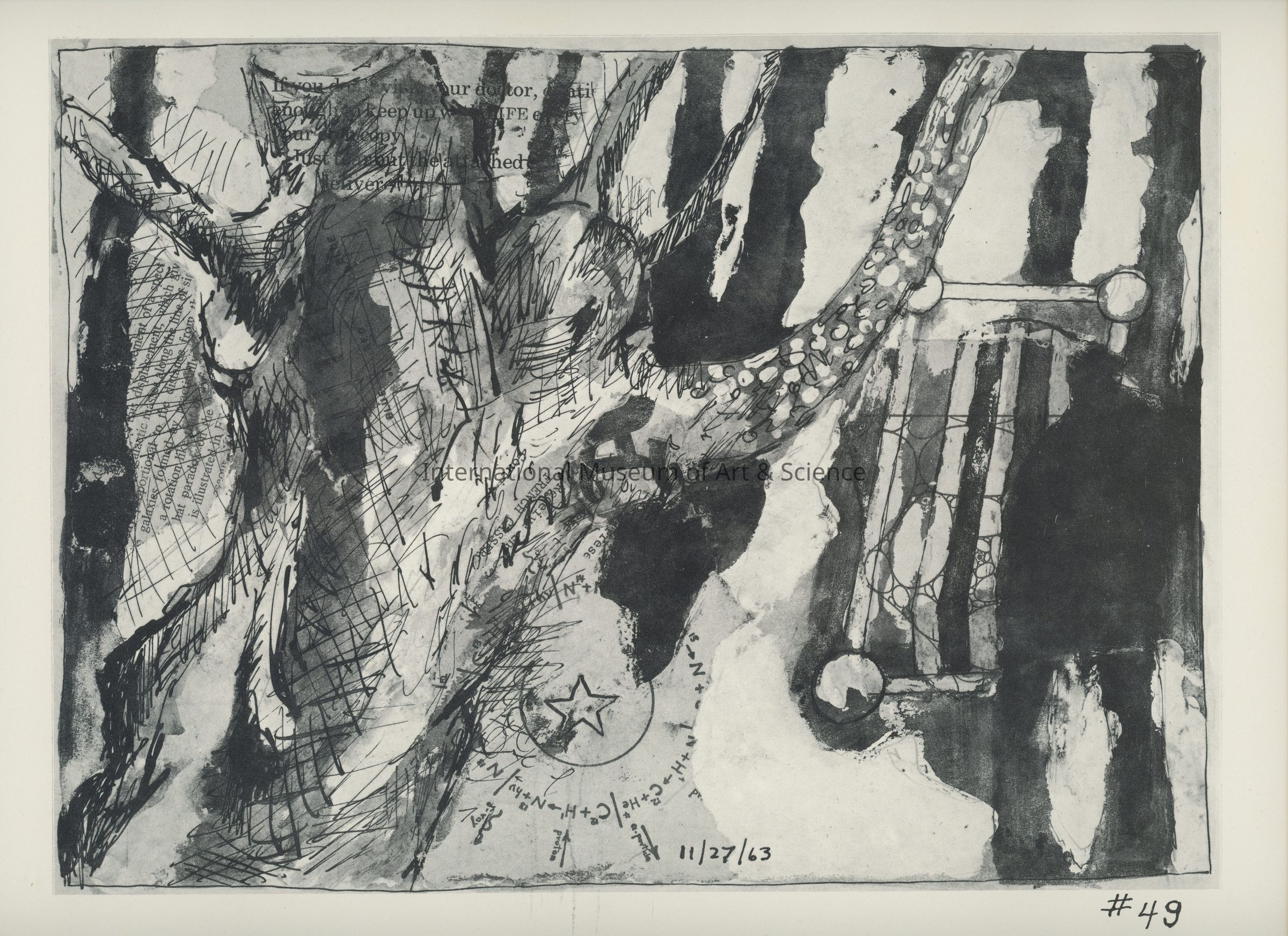 A offset lithograph. This print is part of a 169 piece set entitled: Death is All the Time. The prints are divided into two parts and then sub-grouped again. Part I: Events (Drawings 1 - 52). Prints 36 through 52 are entitled: Death of A Young Man Murdered (JFK). Prints 45 through 49 subtitled: The Nation Mourns.