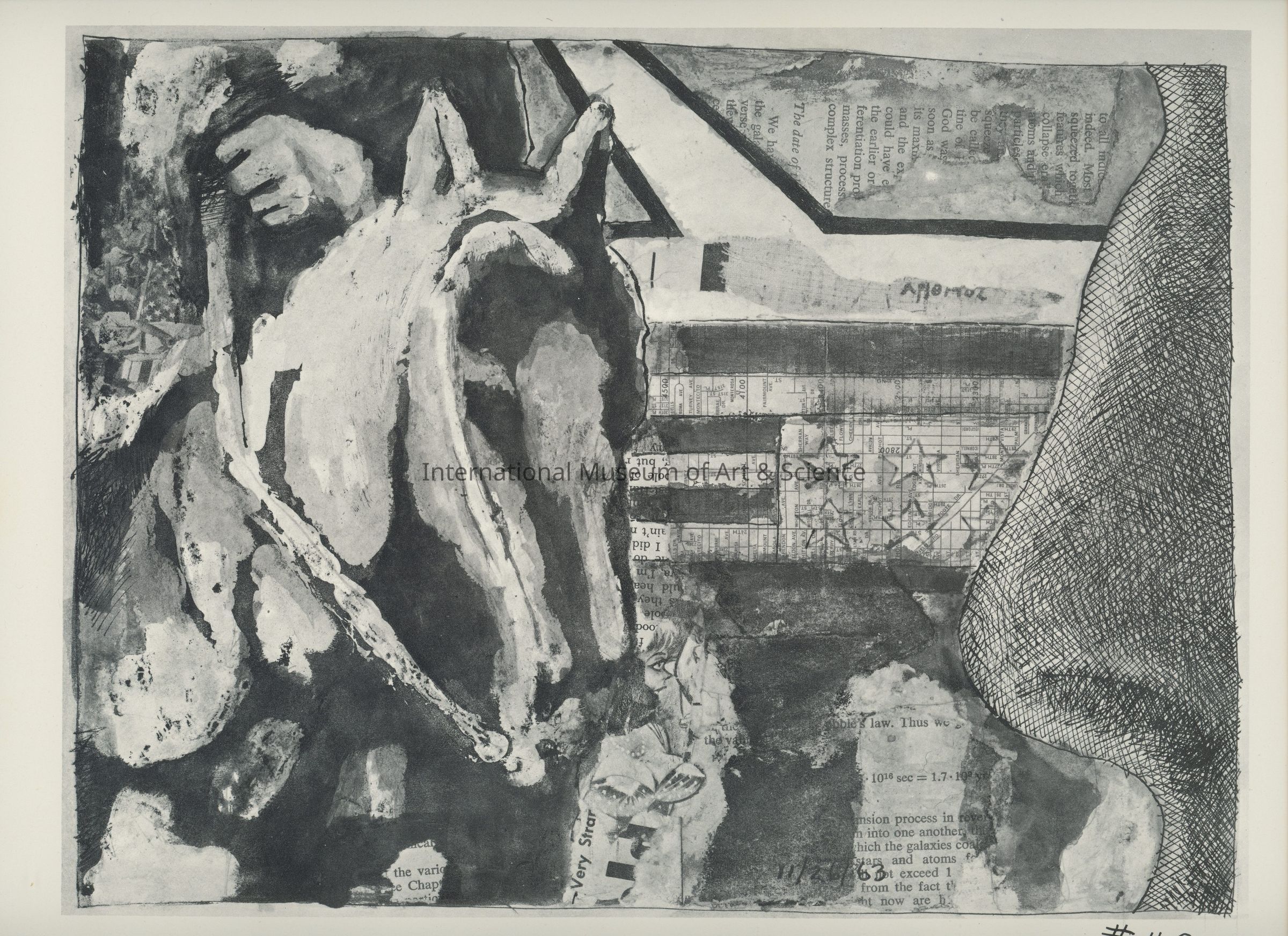 A offset lithograph. This print is part of a 169 piece set entitled: Death is All the Time. The prints are divided into two parts and then sub-grouped again. Part I: Events (Drawings 1 - 52). Prints 36 through 52 are entitled: Death of A Young Man Murdered (JFK). Prints 45 through 49 subtitled: The Nation Mourns.