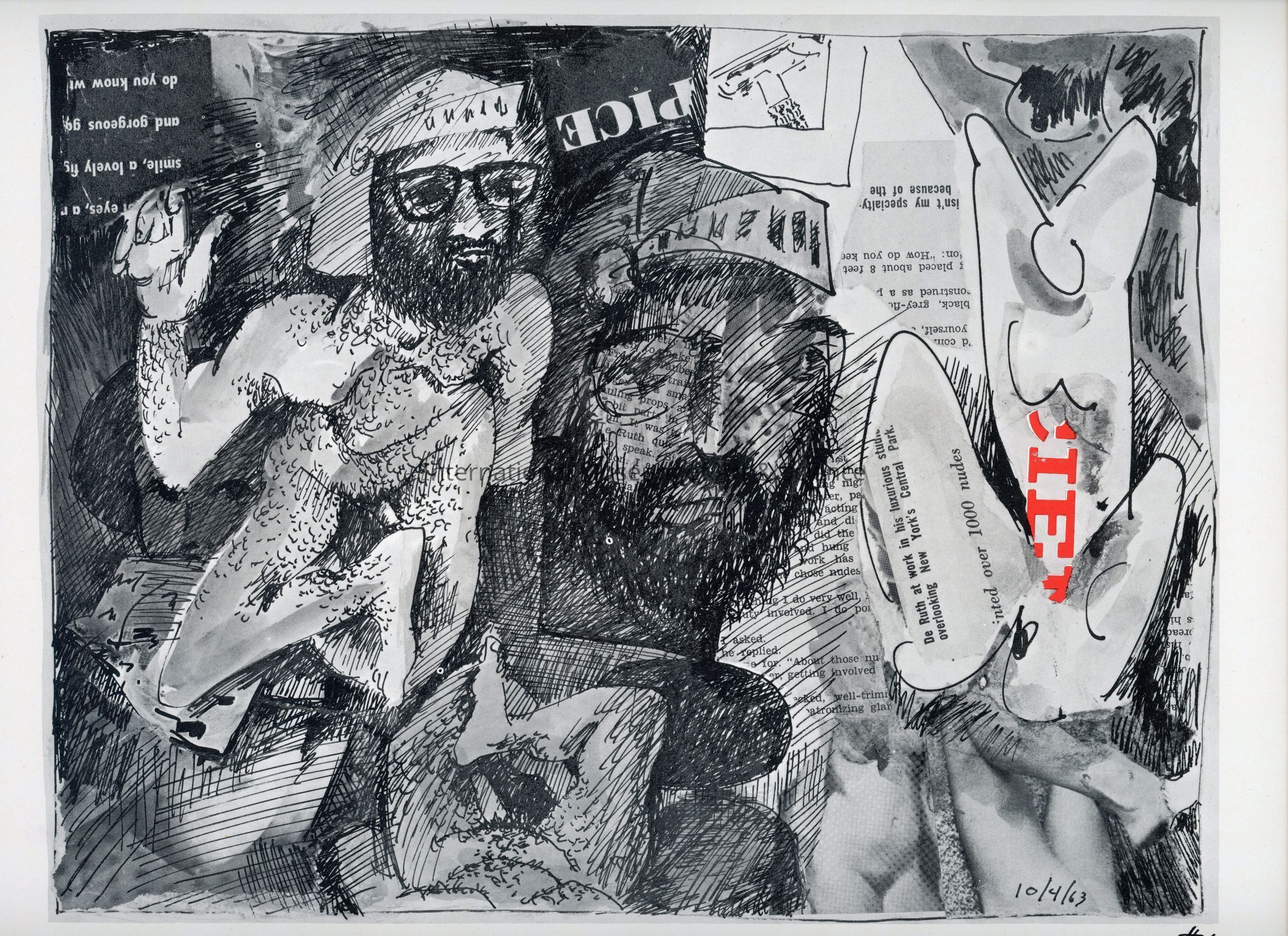 A offset lithograph. This print is part of a 169 piece set entitled: Death is All the Time. The prints are divided into two parts and then sub-grouped again. Part I: Events (Drawings 1 - 52). Prints 1 through 10 are entitled: We Two.