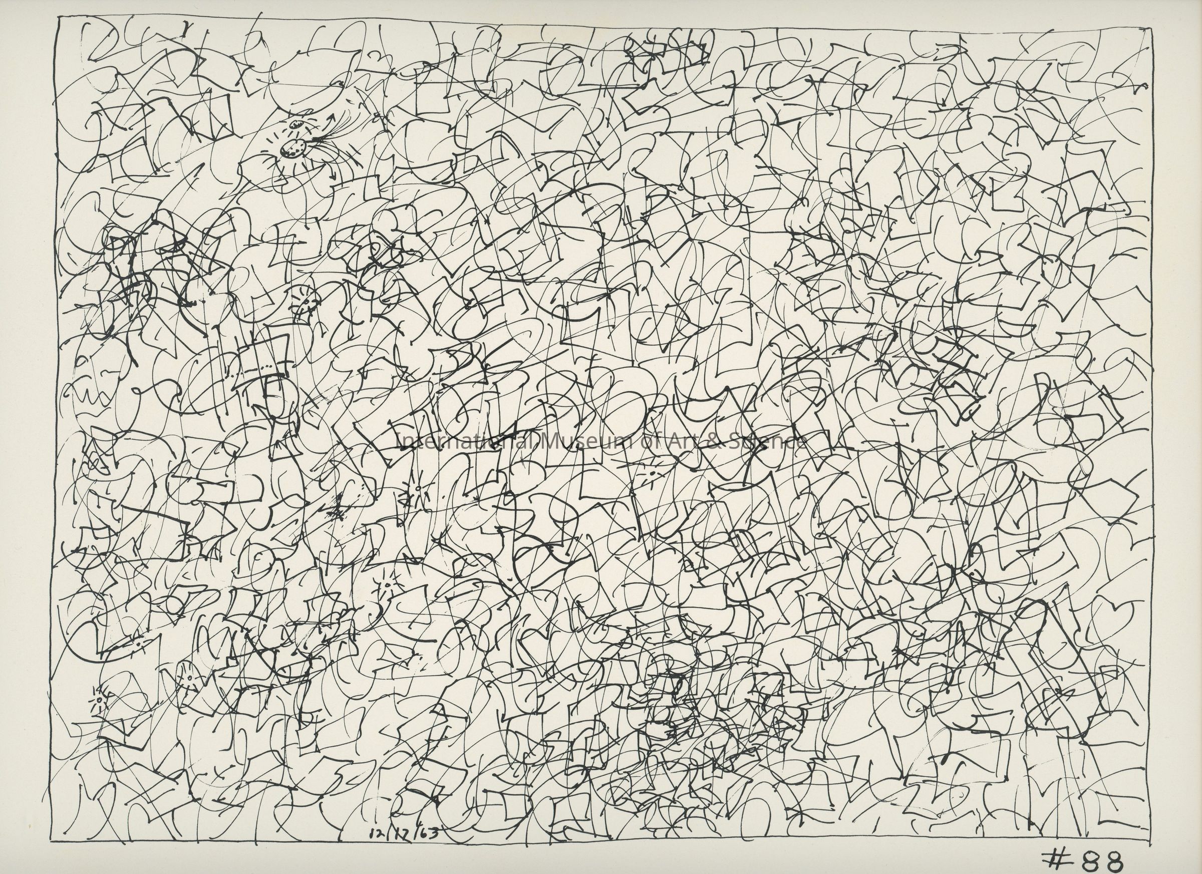A offset lithograph. This print is part of a 169 piece set entitled: Death is All the Time. The prints are divided into two parts and then sub-grouped again. Part II: Aftermath (Drawings 53 - 169). Prints 81 through 90 are entitled: Cosmic "We Two".