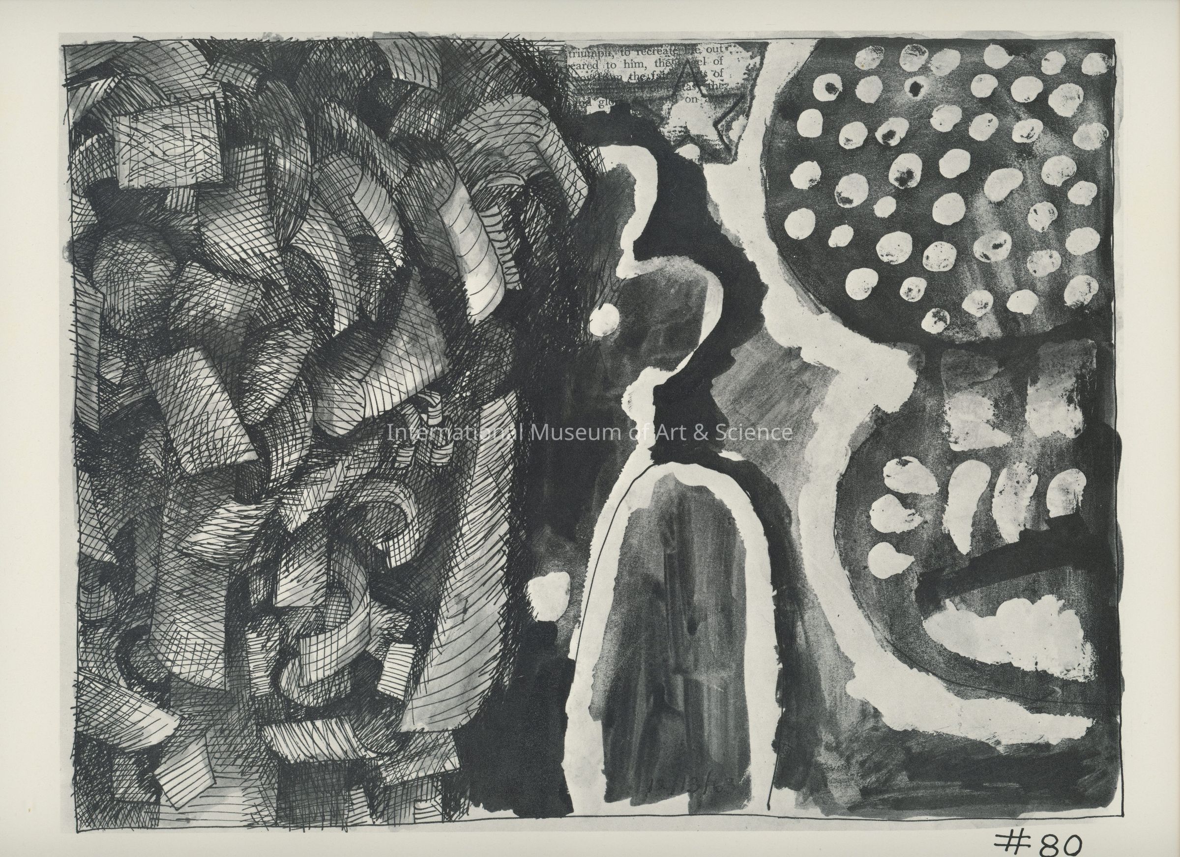 A offset lithograph. This print is part of a 169 piece set entitled: Death is All the Time. The prints are divided into two parts and then sub-grouped again. Part II: Aftermath (Drawings 53 - 169). Prints 75 through 80 are entitled: Process.