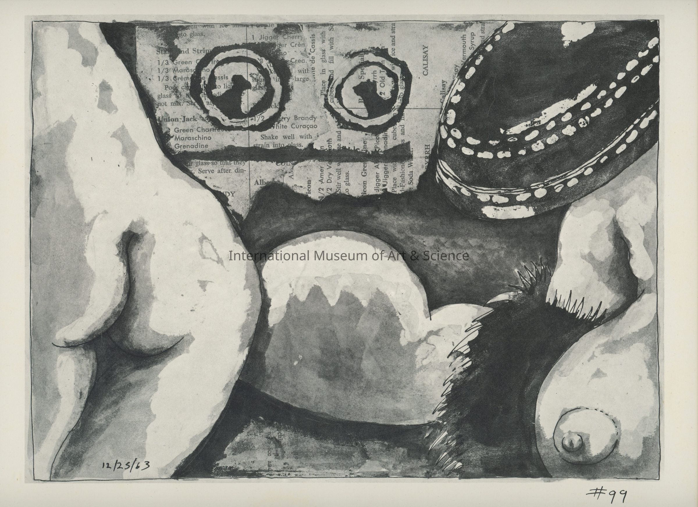 A offset lithograph. This print is part of a 169 piece set entitled: Death is All the Time. The prints are divided into two parts and then sub-grouped again. Part II: Aftermath (Drawings 53 - 169). Prints 91 through 131 are entitled: Nox-Dies or "Night-Dies". 96 through 105 are sub-titled: Day (Dies).