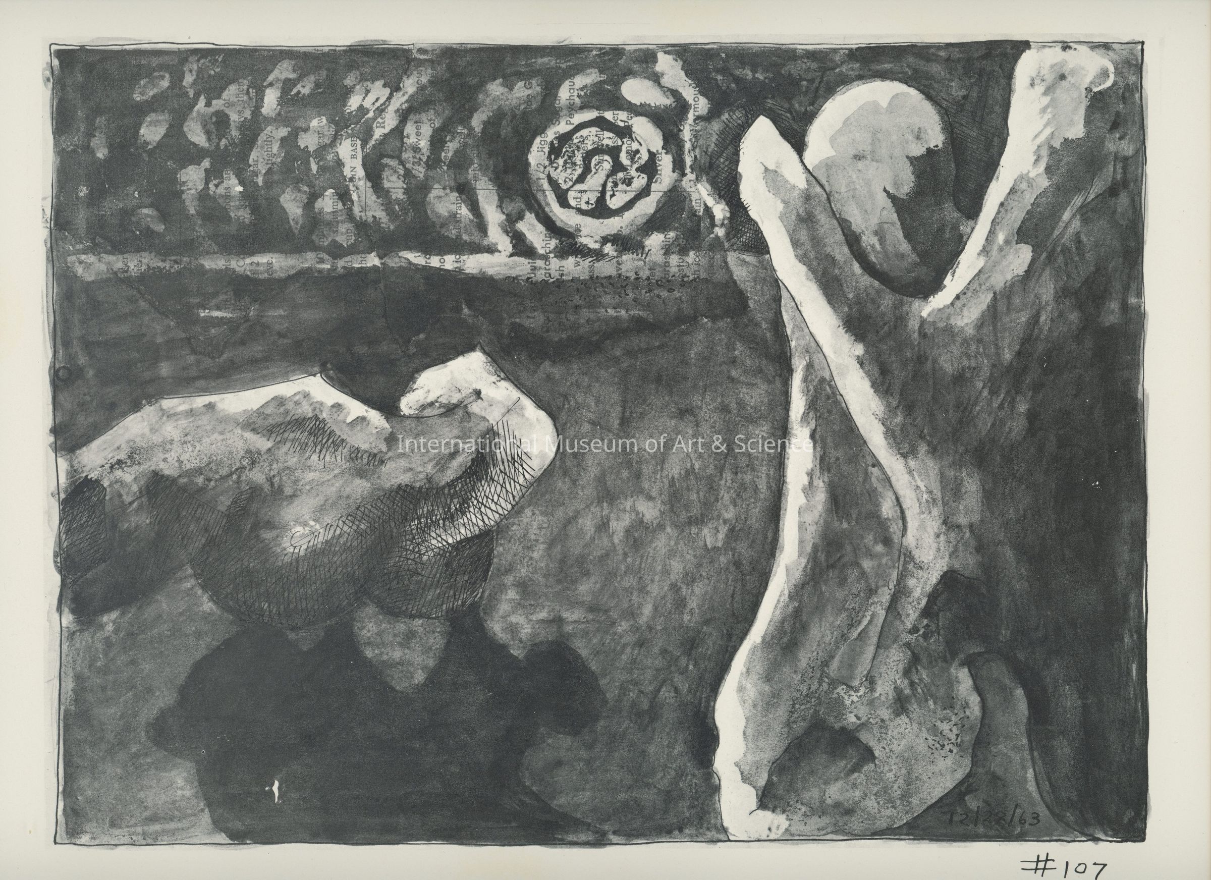A offset lithograph. This print is part of a 169 piece set entitled: Death is All the Time. The prints are divided into two parts and then sub-grouped again. Part II: Aftermath (Drawings 53 - 169). Prints 91 through 131 are entitled: Nox-Dies or "Night-Dies". 106 through 131 are sub-titled: Night (Nox).