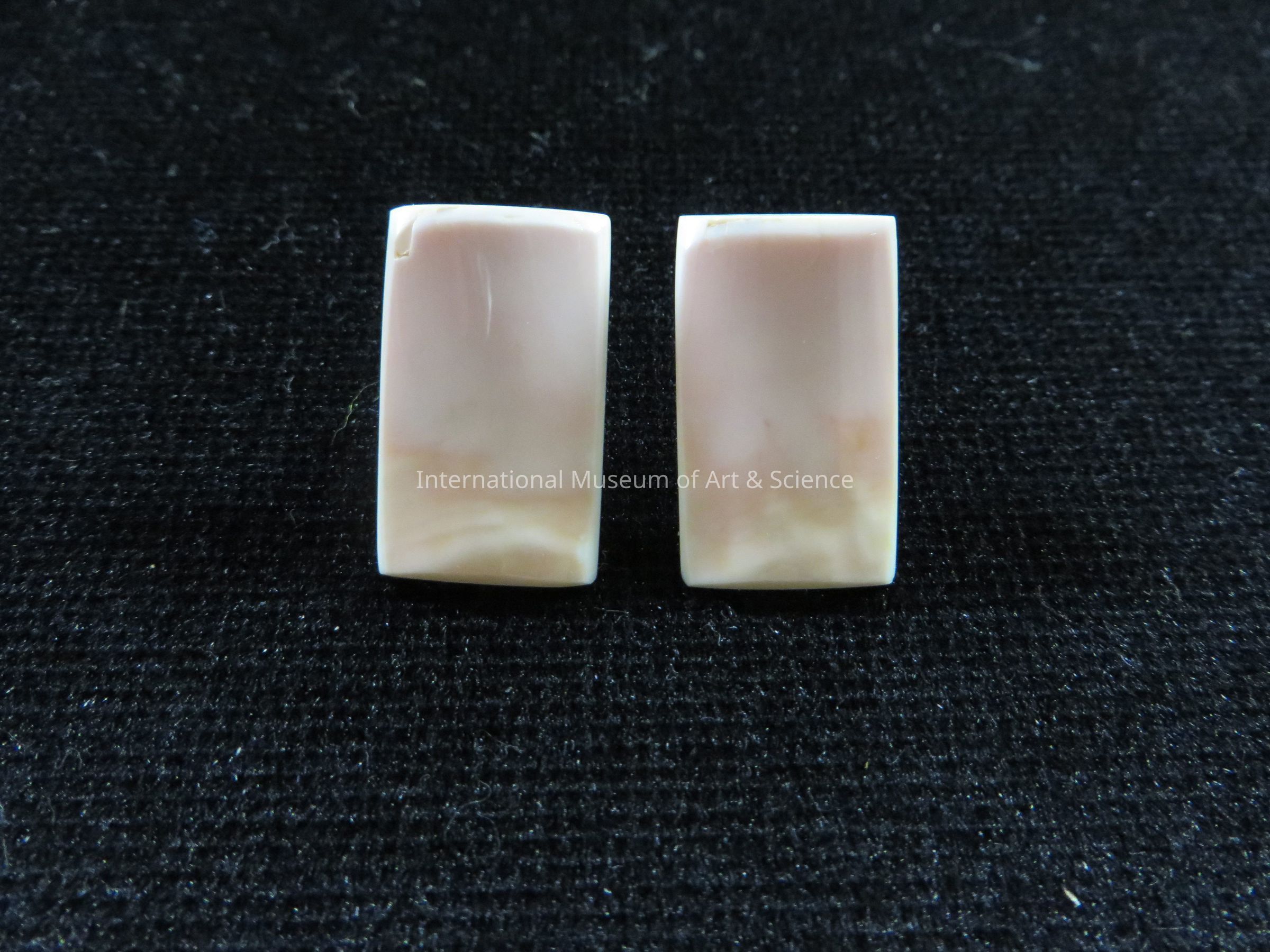An earring set. The jewelry is made of natural shell cut into rectangles.Artwork Details