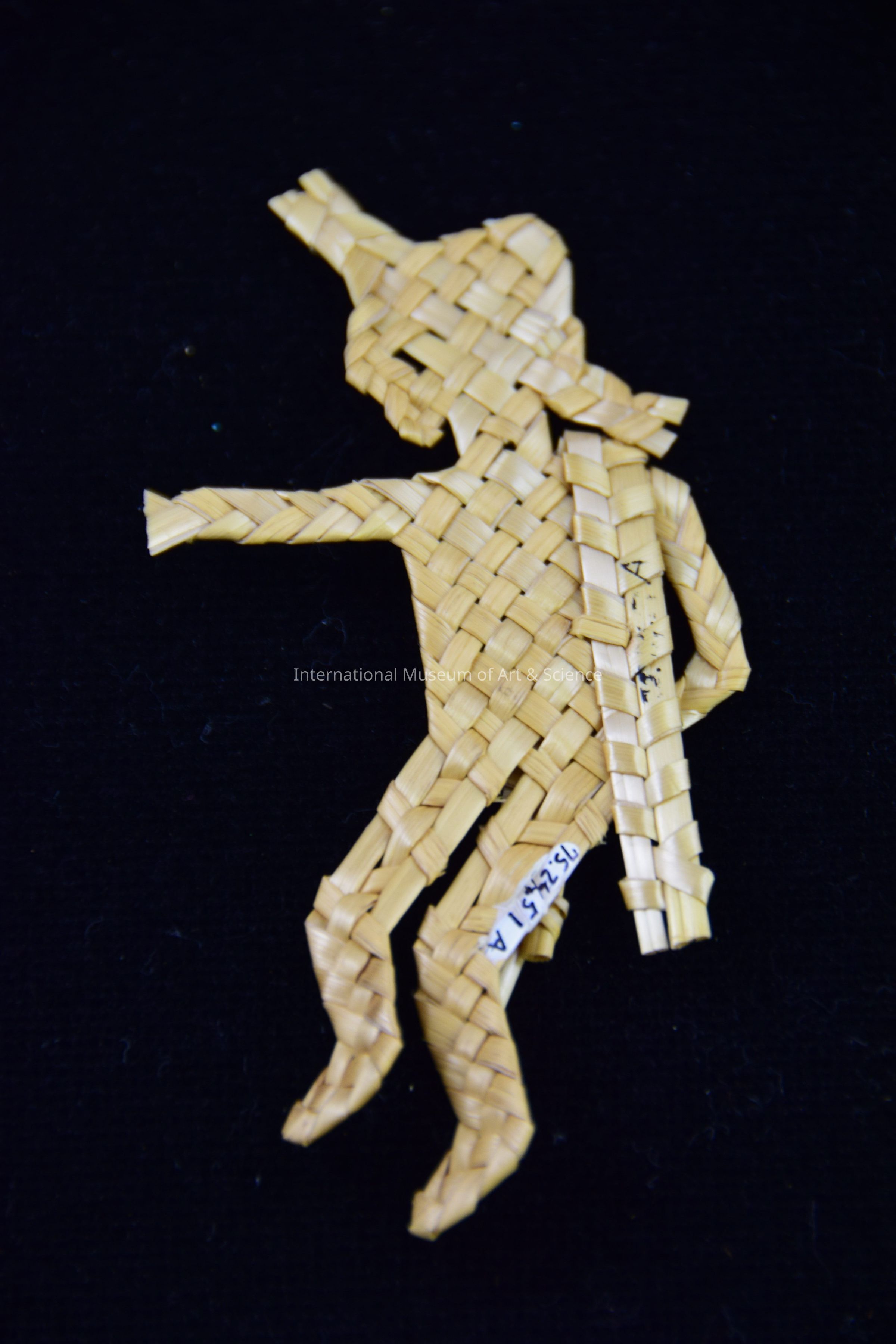 A woven figurine of a male dancer. The figure is woven from wheat straw.