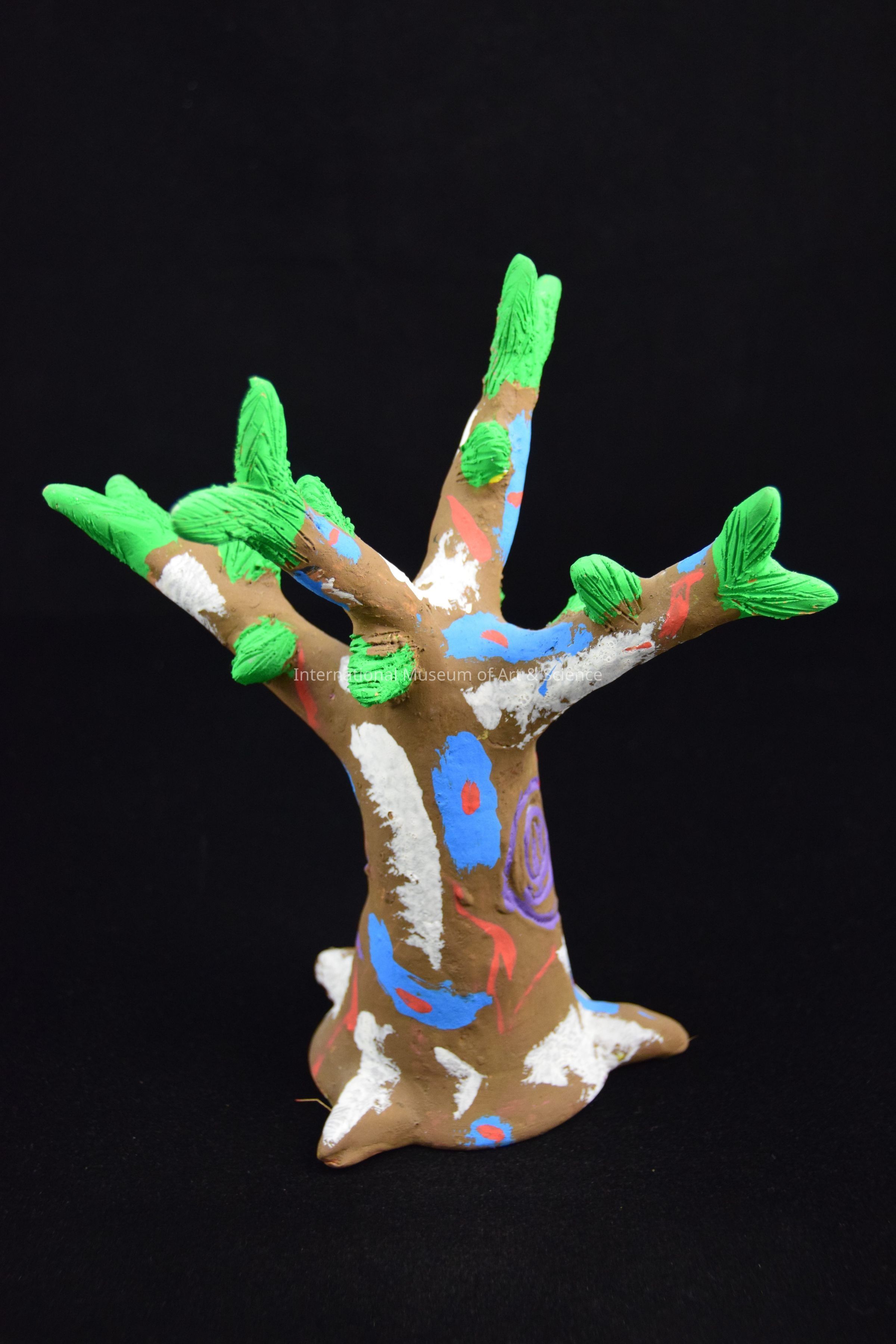 Clay palm tree figurine, colored in brown and diffirent shades of green. Part of set of 12 clay palm trees.Dimensions