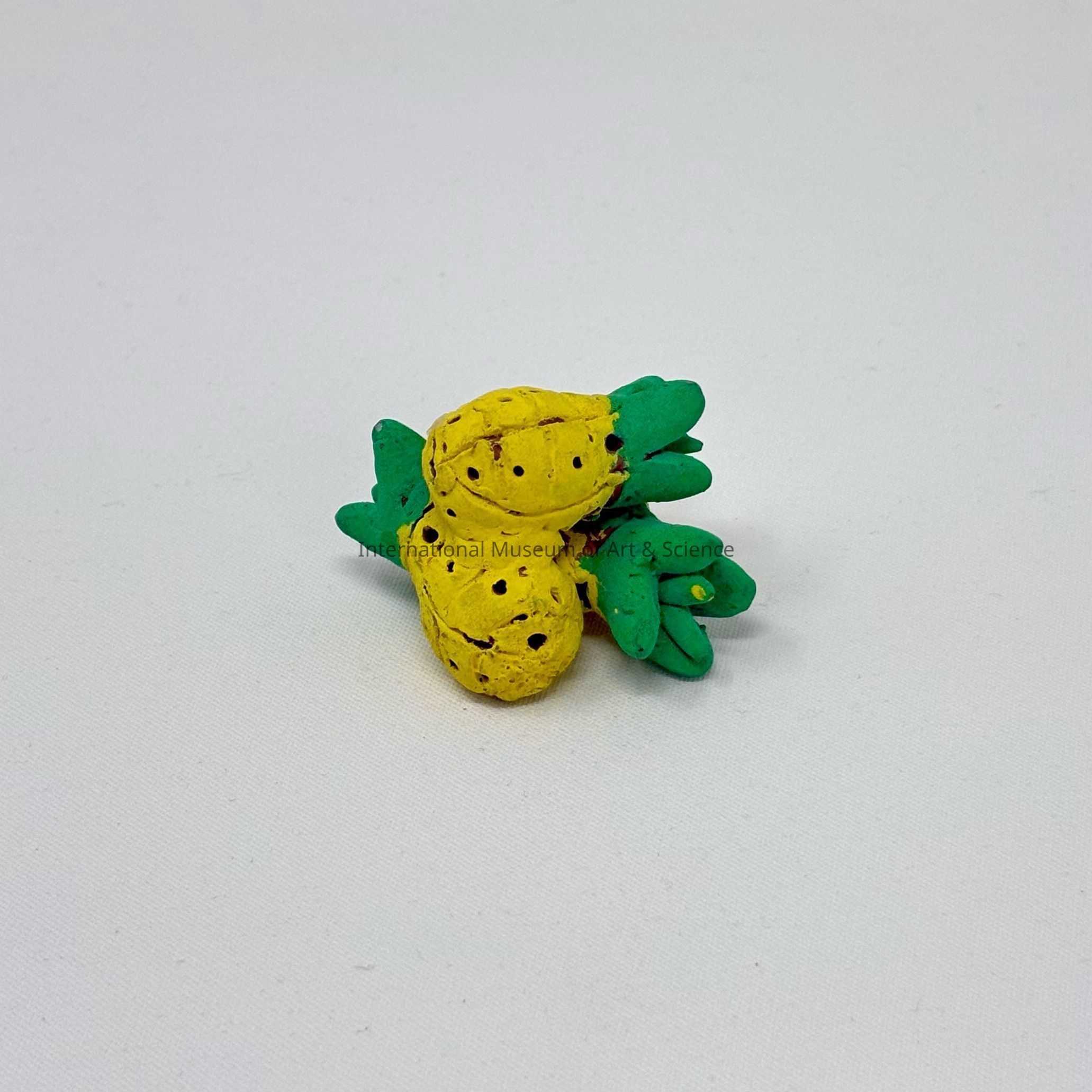 A ceramic figurine of a pile of pineapples. The pineapples are painted yellow and green. They are part of a Market Scene.