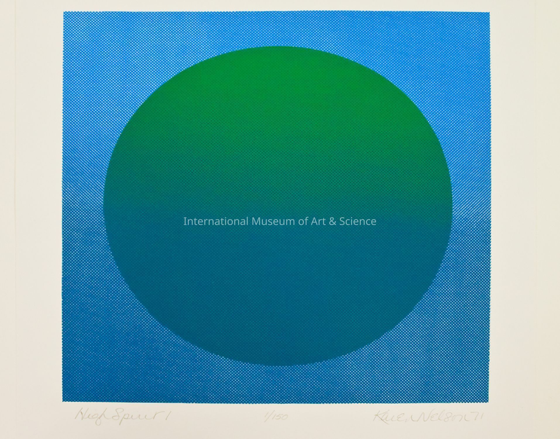 "High Spirit". Color Serigraph. 1/150, Blue and green square and circle.